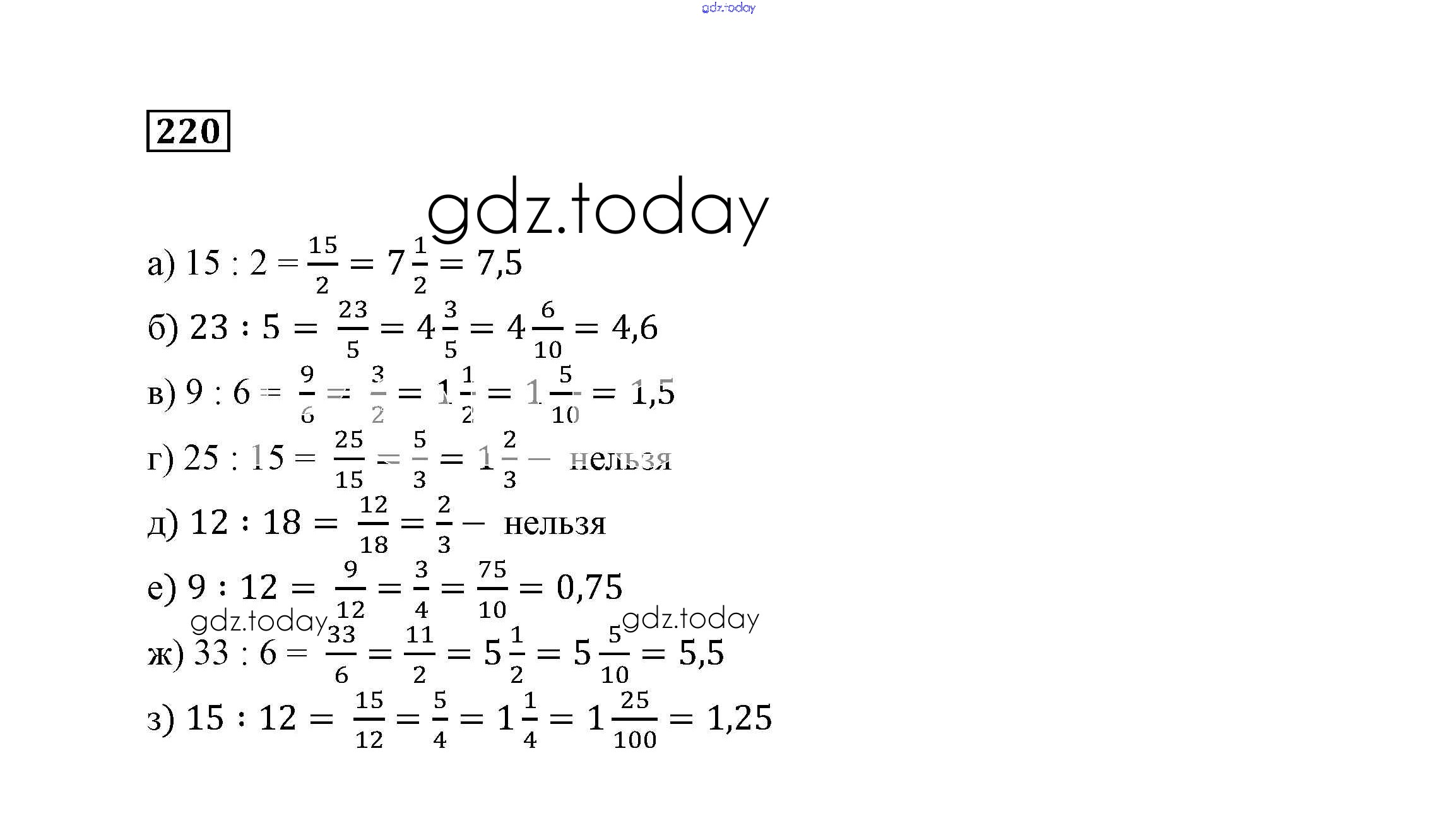 На страницах сайта gdz.today вы найдете учебный и вспомогательный материал, направленный на улучшения знаний школьной программы. ГДЗ - онлайн мир знаний Решение к упражнениям 220 Учебнику по Математике для 6 класса Дорофеев, Шарыгин Просвещение Академический школьный учебник 2014