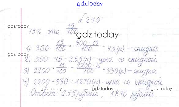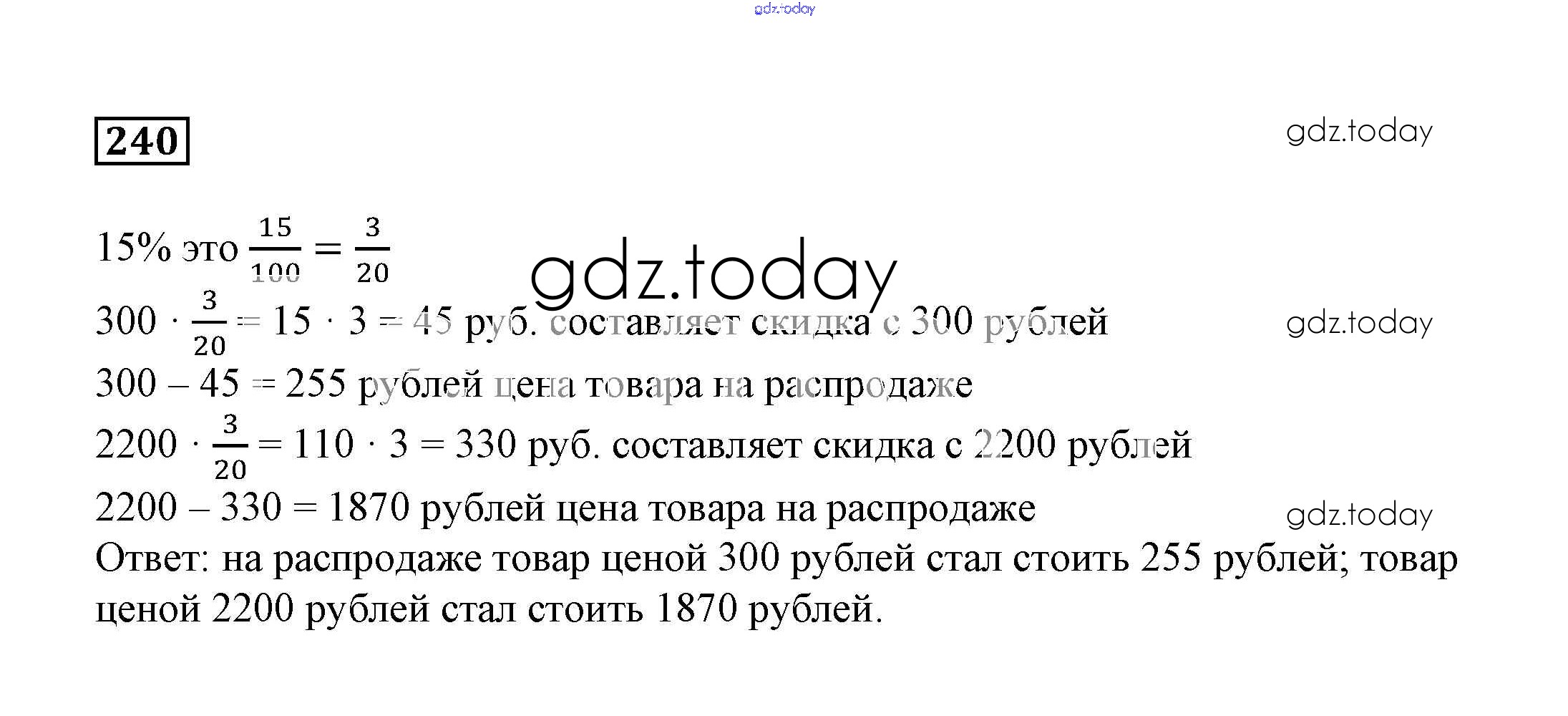 Ответы к Решение к упражнениям 240 Учебнику по Математике для 6 класса Дорофеев, Шарыгин Просвещение Академический школьный учебник 2014