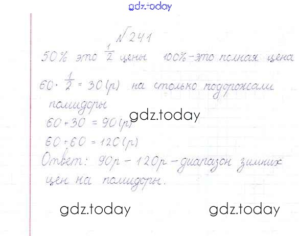 Ответы к Решение к упражнениям 241 Учебнику по Математике для 6 класса Дорофеев, Шарыгин Просвещение Академический школьный учебник 2014