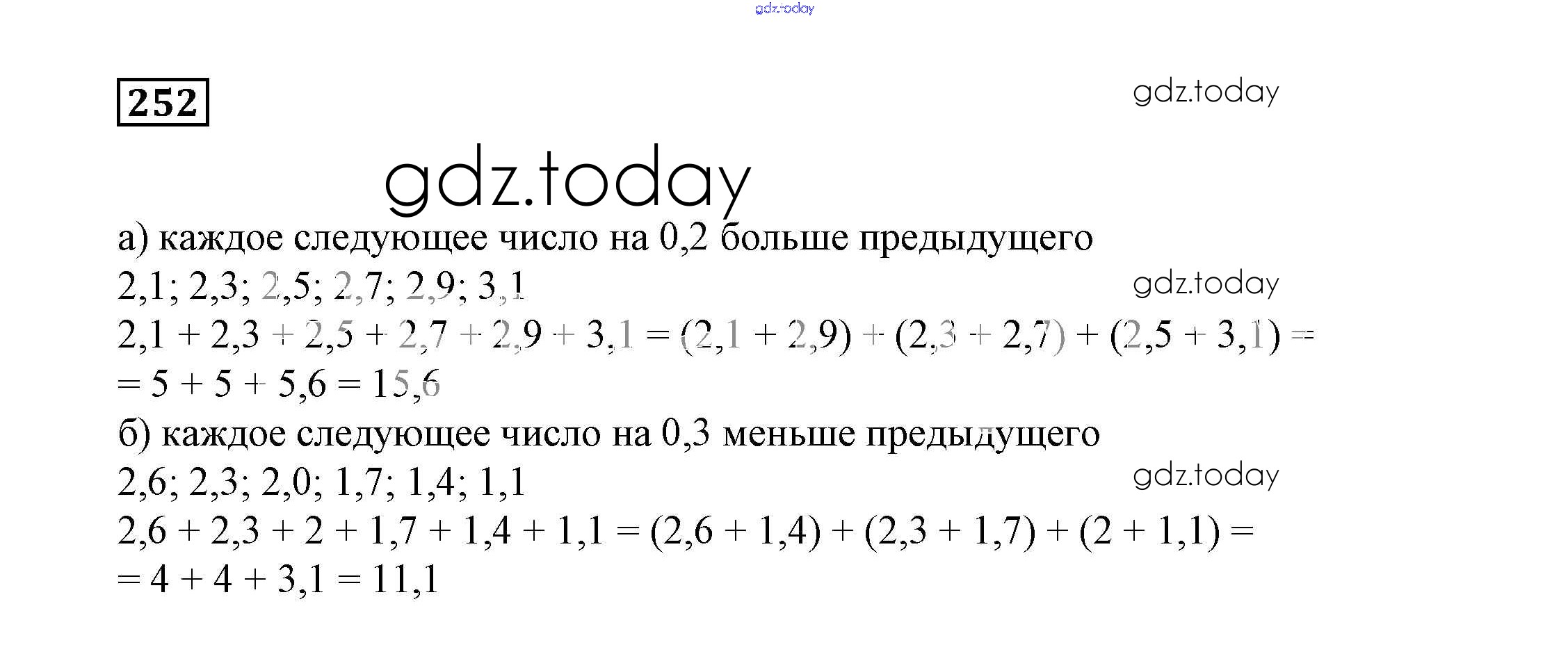На страницах сайта gdz.today вы найдете учебный и вспомогательный материал, направленный на улучшения знаний школьной программы. ГДЗ - онлайн мир знаний Решение к упражнениям 252 Учебнику по Математике для 6 класса Дорофеев, Шарыгин Просвещение Академический школьный учебник 2014