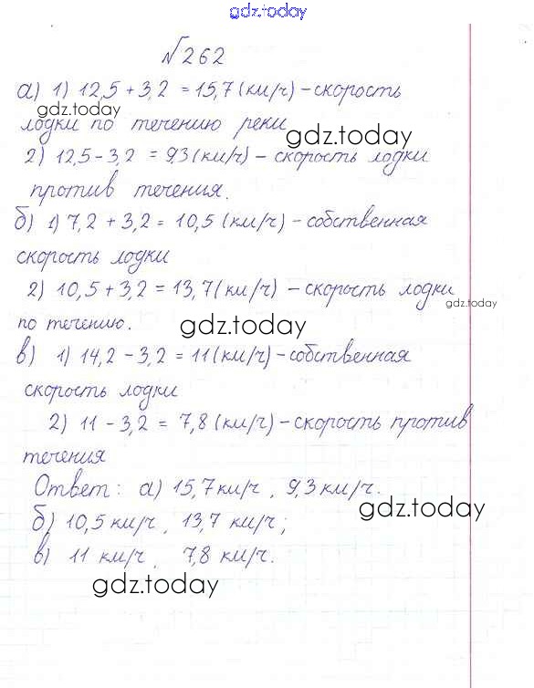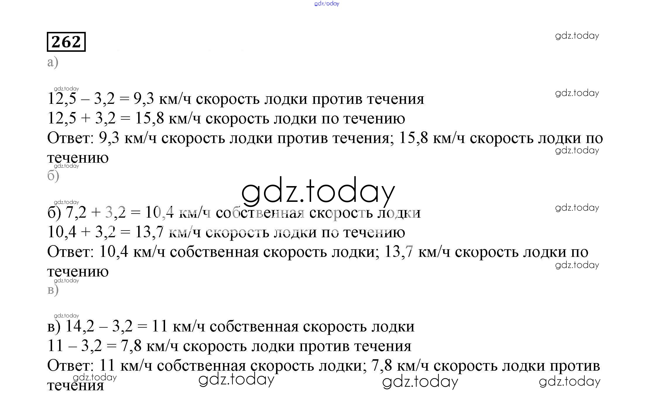 Ответы к Решение к упражнениям 262 Учебнику по Математике для 6 класса Дорофеев, Шарыгин Просвещение Академический школьный учебник 2014