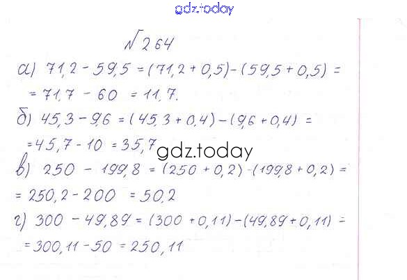 На страницах сайта gdz.today вы найдете учебный и вспомогательный материал, направленный на улучшения знаний школьной программы. ГДЗ - онлайн мир знаний Решение к упражнениям 264 Учебнику по Математике для 6 класса Дорофеев, Шарыгин Просвещение Академический школьный учебник 2014