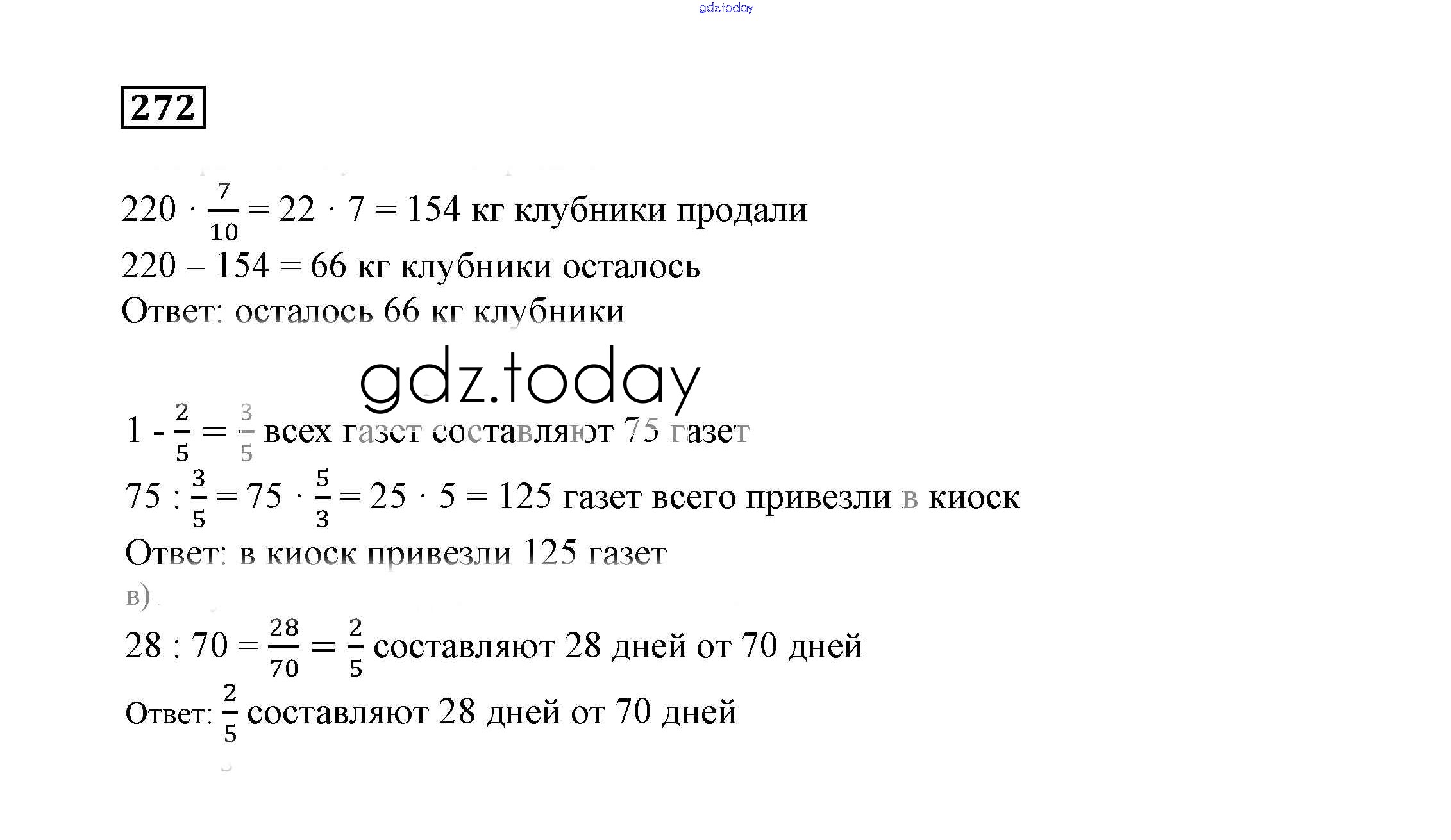 Ответы к Решение к упражнениям 272 Учебнику по Математике для 6 класса Дорофеев, Шарыгин Просвещение Академический школьный учебник 2014