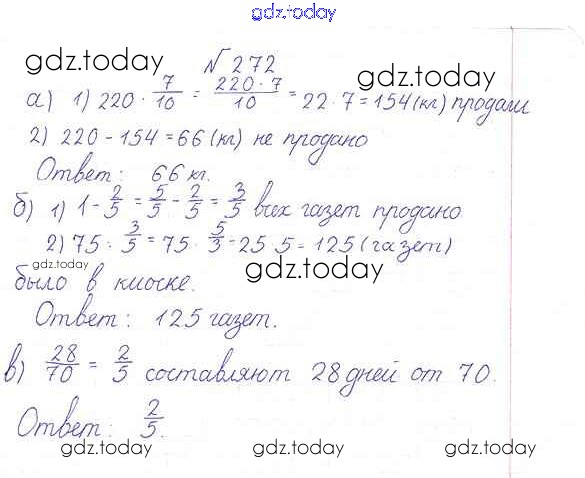 На страницах сайта gdz.today вы найдете учебный и вспомогательный материал, направленный на улучшения знаний школьной программы. ГДЗ - онлайн мир знаний Решение к упражнениям 272 Учебнику по Математике для 6 класса Дорофеев, Шарыгин Просвещение Академический школьный учебник 2014