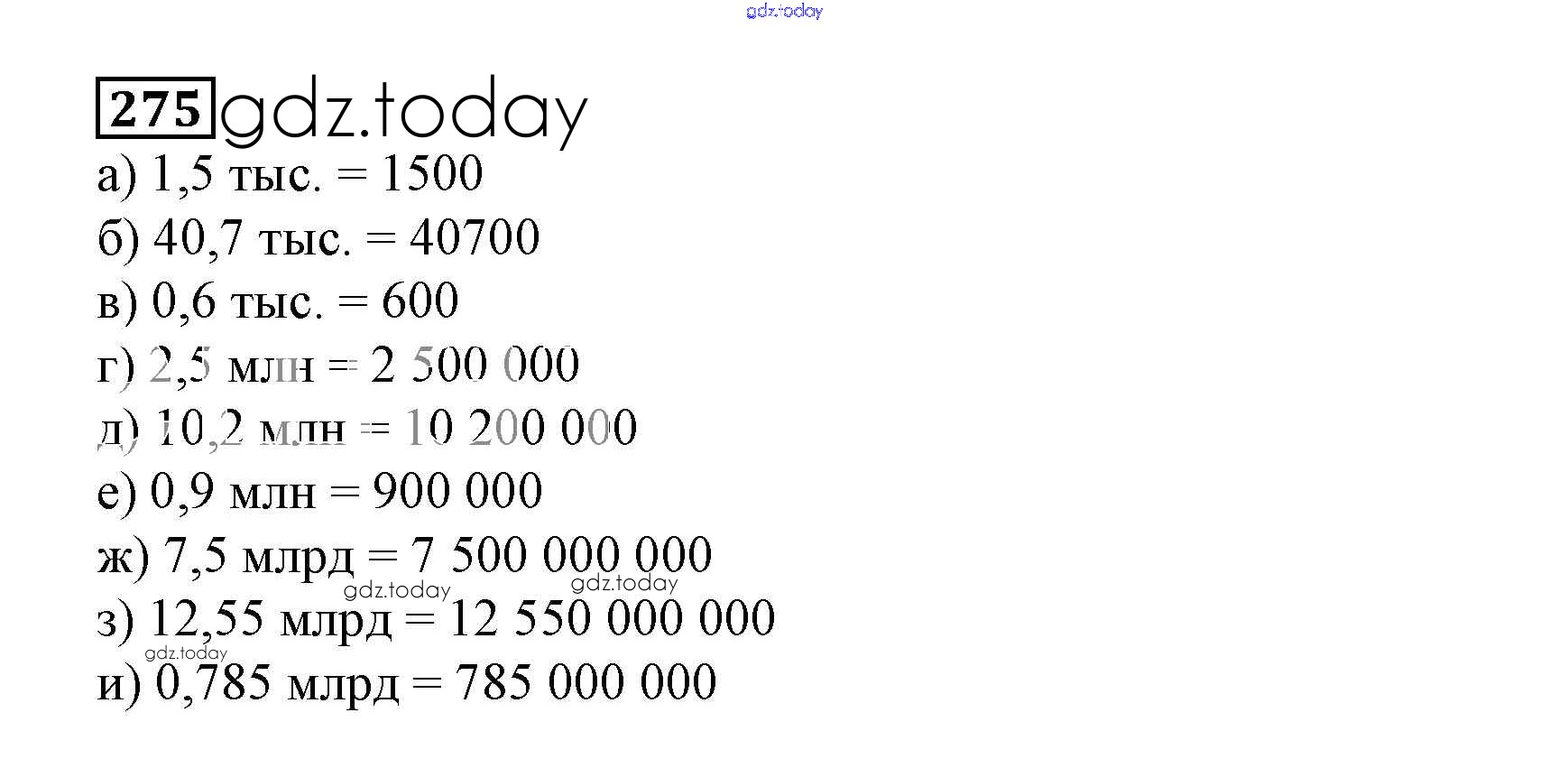 На страницах сайта gdz.today вы найдете учебный и вспомогательный материал, направленный на улучшения знаний школьной программы. ГДЗ - онлайн мир знаний Решение к упражнениям 275 Учебнику по Математике для 6 класса Дорофеев, Шарыгин Просвещение Академический школьный учебник 2014