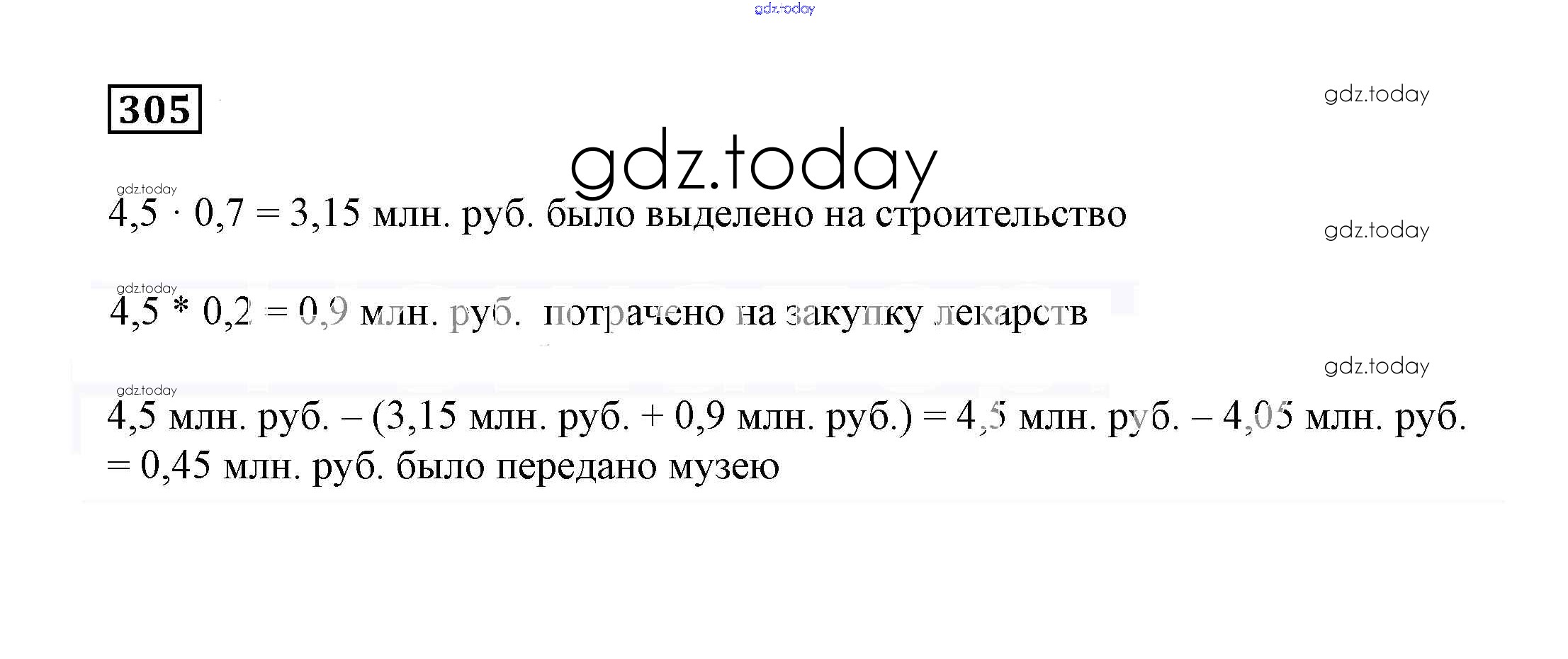 На страницах сайта gdz.today вы найдете учебный и вспомогательный материал, направленный на улучшения знаний школьной программы. ГДЗ - онлайн мир знаний Решение к упражнениям 305 Учебнику по Математике для 6 класса Дорофеев, Шарыгин Просвещение Академический школьный учебник 2014
