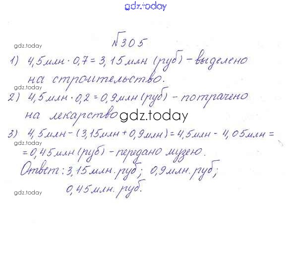 Ответы к Решение к упражнениям 305 Учебнику по Математике для 6 класса Дорофеев, Шарыгин Просвещение Академический школьный учебник 2014