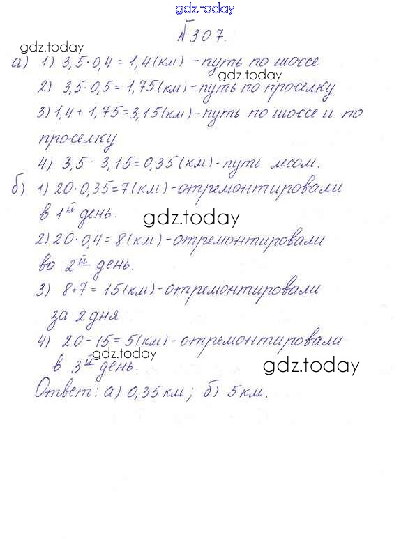 На страницах сайта gdz.today вы найдете учебный и вспомогательный материал, направленный на улучшения знаний школьной программы. ГДЗ - онлайн мир знаний Решение к упражнениям 307 Учебнику по Математике для 6 класса Дорофеев, Шарыгин Просвещение Академический школьный учебник 2014