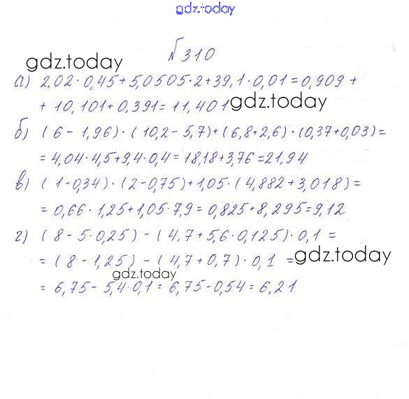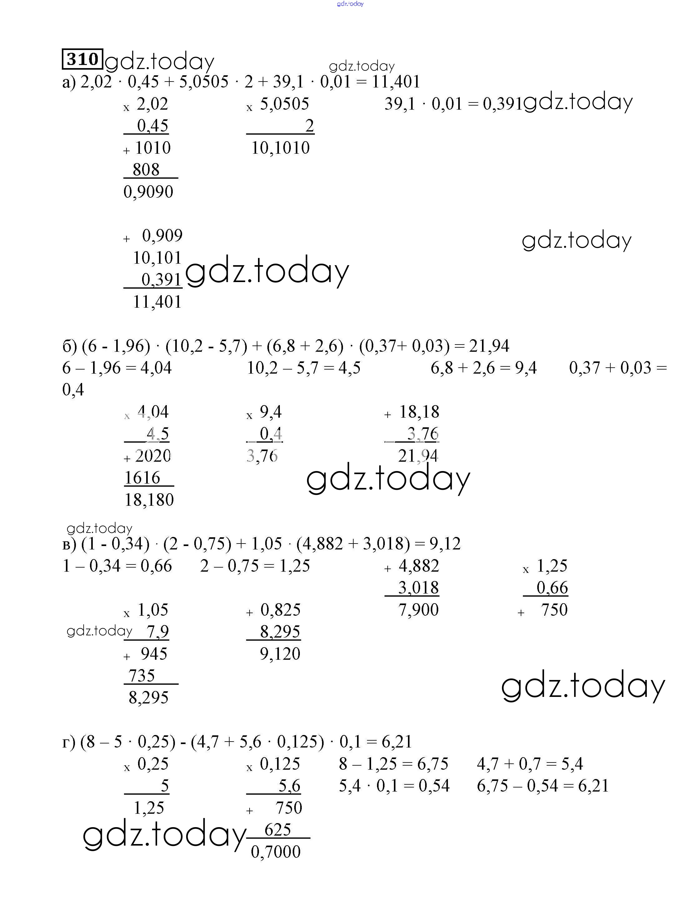 Ответы к Решение к упражнениям 310 Учебнику по Математике для 6 класса Дорофеев, Шарыгин Просвещение Академический школьный учебник 2014