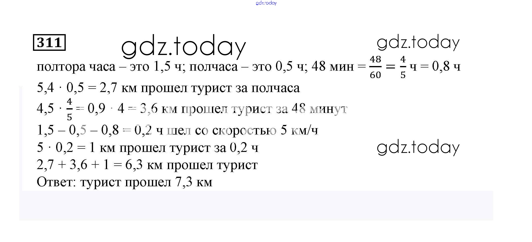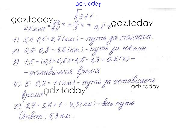 Ответы к Решение к упражнениям 311 Учебнику по Математике для 6 класса Дорофеев, Шарыгин Просвещение Академический школьный учебник 2014