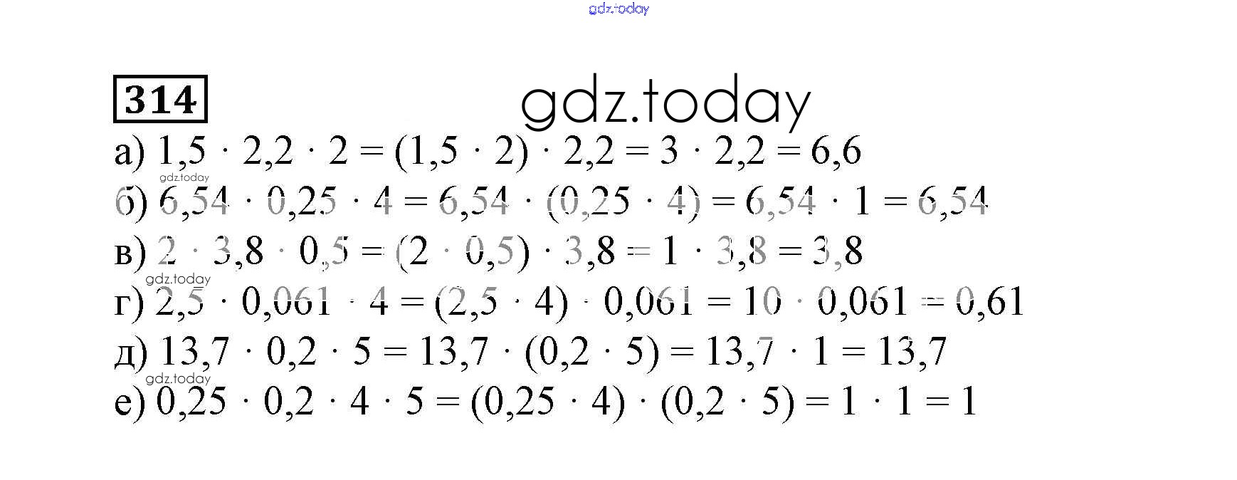 На страницах сайта gdz.today вы найдете учебный и вспомогательный материал, направленный на улучшения знаний школьной программы. ГДЗ - онлайн мир знаний Решение к упражнениям 314 Учебнику по Математике для 6 класса Дорофеев, Шарыгин Просвещение Академический школьный учебник 2014