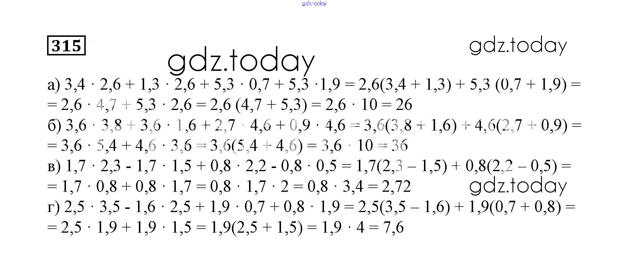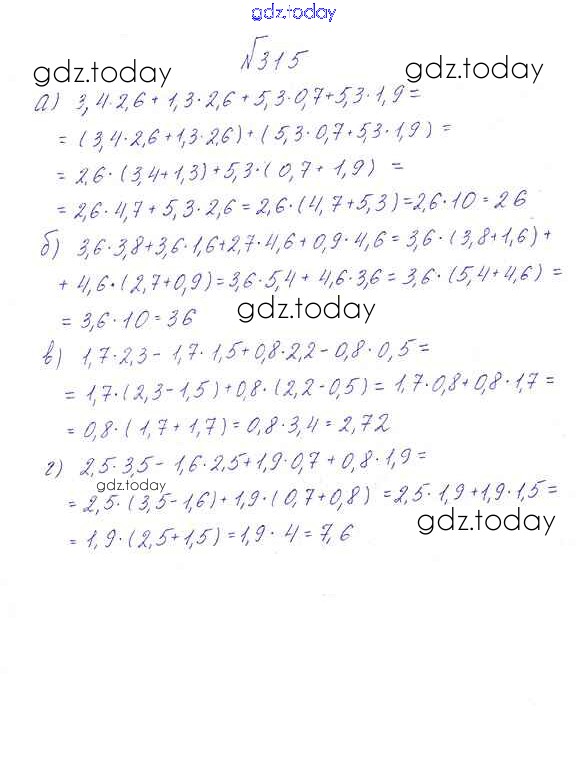На страницах сайта gdz.today вы найдете учебный и вспомогательный материал, направленный на улучшения знаний школьной программы. ГДЗ - онлайн мир знаний Решение к упражнениям 315 Учебнику по Математике для 6 класса Дорофеев, Шарыгин Просвещение Академический школьный учебник 2014