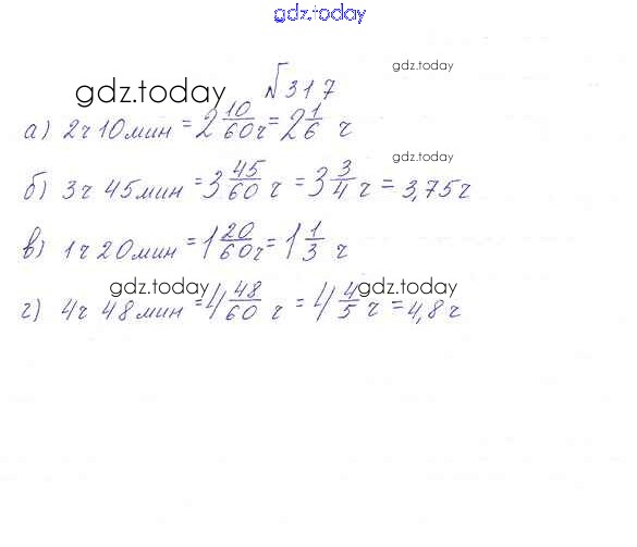 Ответы к Решение к упражнениям 317 Учебнику по Математике для 6 класса Дорофеев, Шарыгин Просвещение Академический школьный учебник 2014