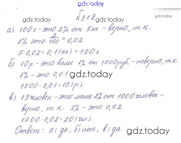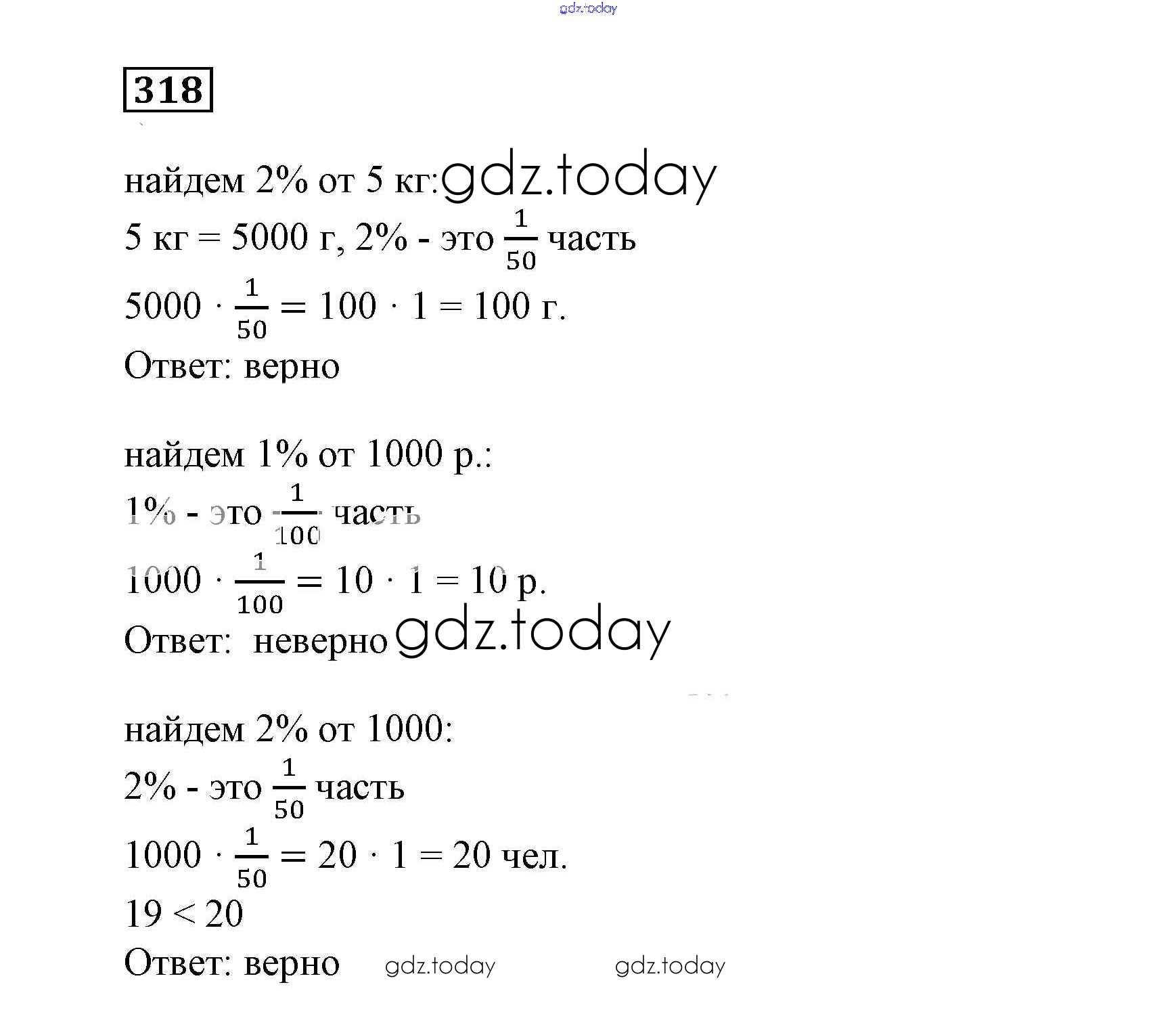 Ответы к Решение к упражнениям 318 Учебнику по Математике для 6 класса Дорофеев, Шарыгин Просвещение Академический школьный учебник 2014