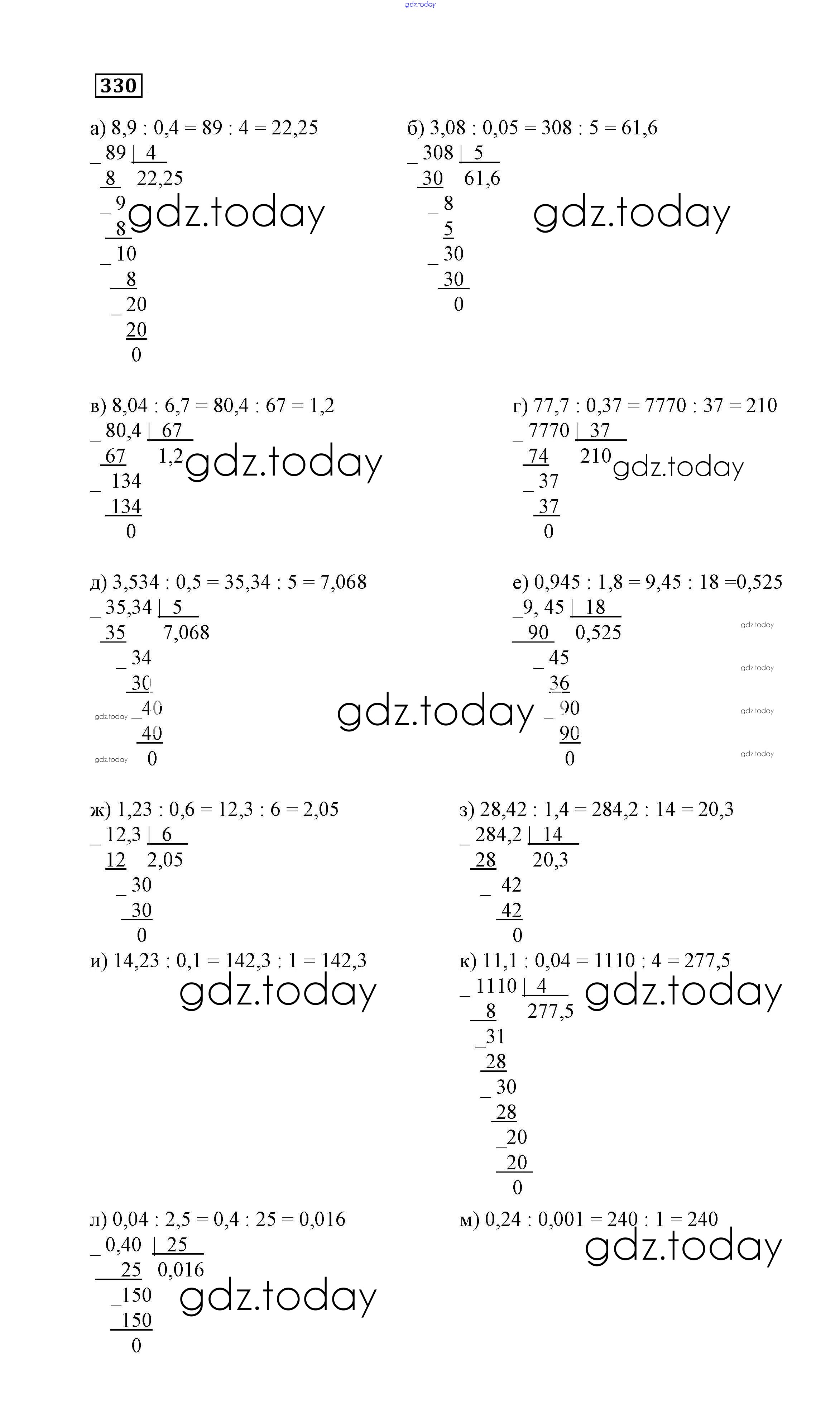 Ответы к Решение к упражнениям 330 Учебнику по Математике для 6 класса Дорофеев, Шарыгин Просвещение Академический школьный учебник 2014