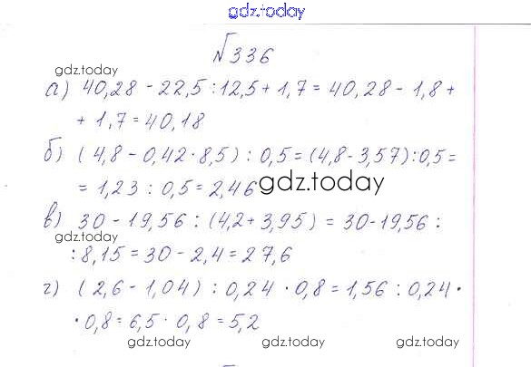 На страницах сайта gdz.today вы найдете учебный и вспомогательный материал, направленный на улучшения знаний школьной программы. ГДЗ - онлайн мир знаний Решение к упражнениям 336 Учебнику по Математике для 6 класса Дорофеев, Шарыгин Просвещение Академический школьный учебник 2014