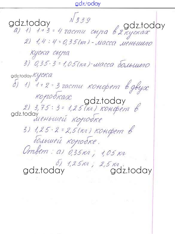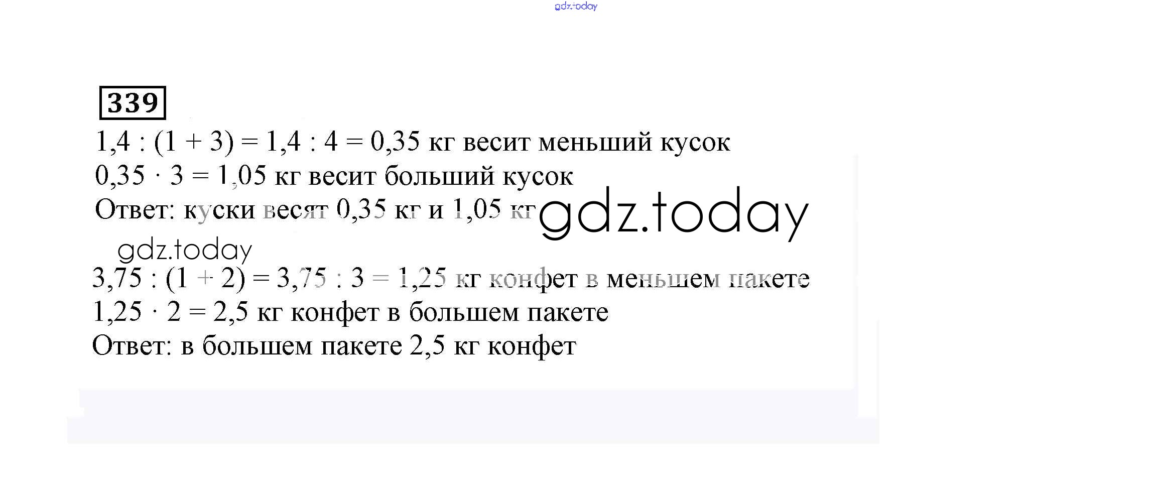 Ответы к Решение к упражнениям 339 Учебнику по Математике для 6 класса Дорофеев, Шарыгин Просвещение Академический школьный учебник 2014