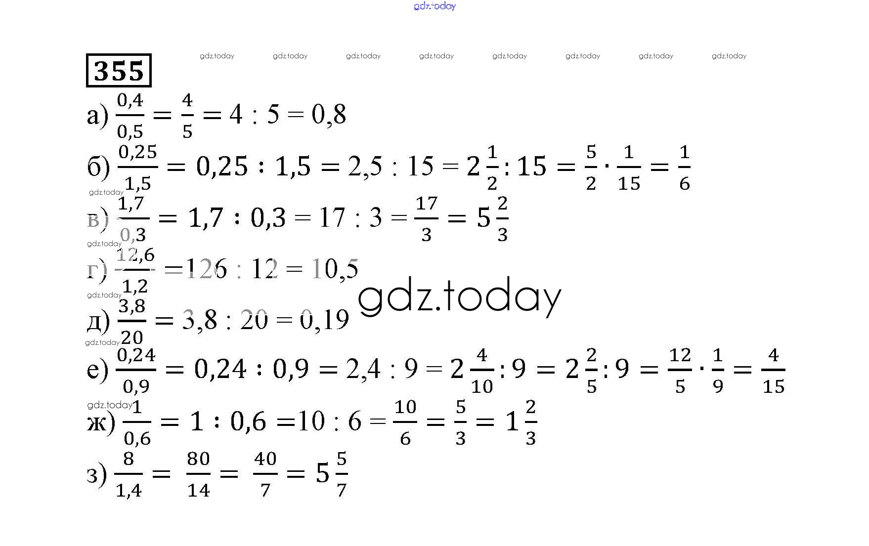 На страницах сайта gdz.today вы найдете учебный и вспомогательный материал, направленный на улучшения знаний школьной программы. ГДЗ - онлайн мир знаний Решение к упражнениям 355 Учебнику по Математике для 6 класса Дорофеев, Шарыгин Просвещение Академический школьный учебник 2014