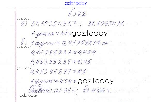 Ответы к Решение к упражнениям 372 Учебнику по Математике для 6 класса Дорофеев, Шарыгин Просвещение Академический школьный учебник 2014