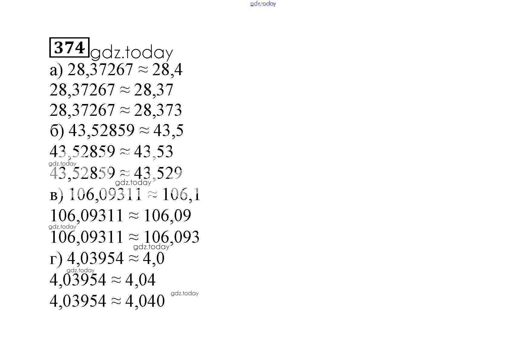 На страницах сайта gdz.today вы найдете учебный и вспомогательный материал, направленный на улучшения знаний школьной программы. ГДЗ - онлайн мир знаний Решение к упражнениям 374 Учебнику по Математике для 6 класса Дорофеев, Шарыгин Просвещение Академический школьный учебник 2014