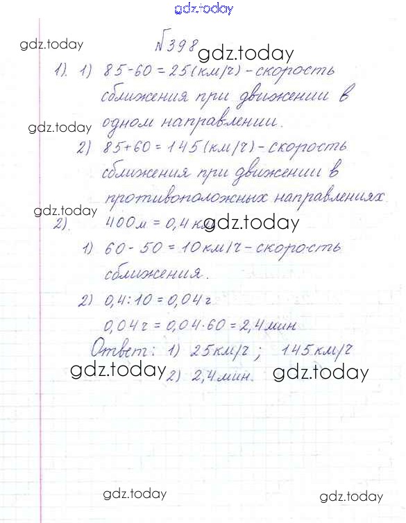На страницах сайта gdz.today вы найдете учебный и вспомогательный материал, направленный на улучшения знаний школьной программы. ГДЗ - онлайн мир знаний Решение к упражнениям 398 Учебнику по Математике для 6 класса Дорофеев, Шарыгин Просвещение Академический школьный учебник 2014
