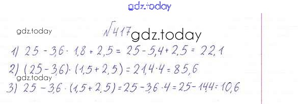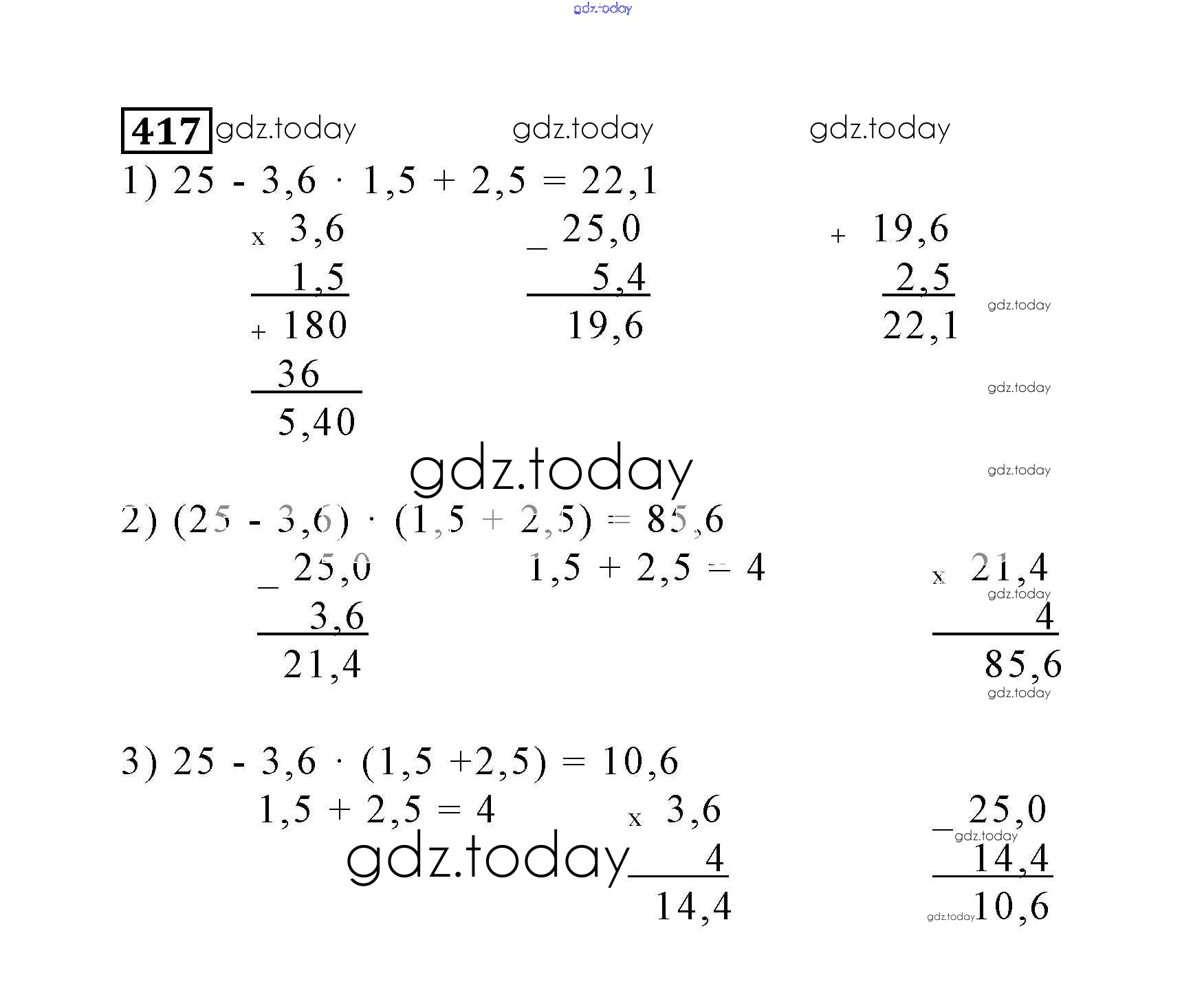 На страницах сайта gdz.today вы найдете учебный и вспомогательный материал, направленный на улучшения знаний школьной программы. ГДЗ - онлайн мир знаний Решение к упражнениям 417 Учебнику по Математике для 6 класса Дорофеев, Шарыгин Просвещение Академический школьный учебник 2014