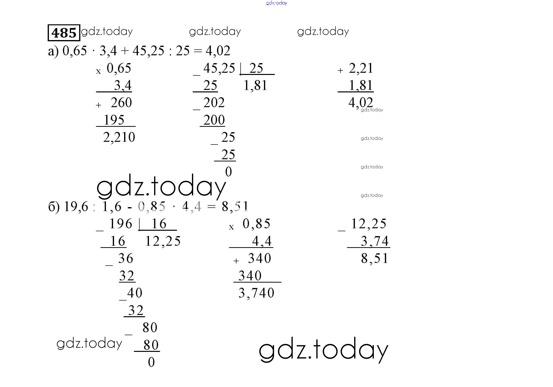 На страницах сайта gdz.today вы найдете учебный и вспомогательный материал, направленный на улучшения знаний школьной программы. ГДЗ - онлайн мир знаний Решение к упражнениям 485 Учебнику по Математике для 6 класса Дорофеев, Шарыгин Просвещение Академический школьный учебник 2014