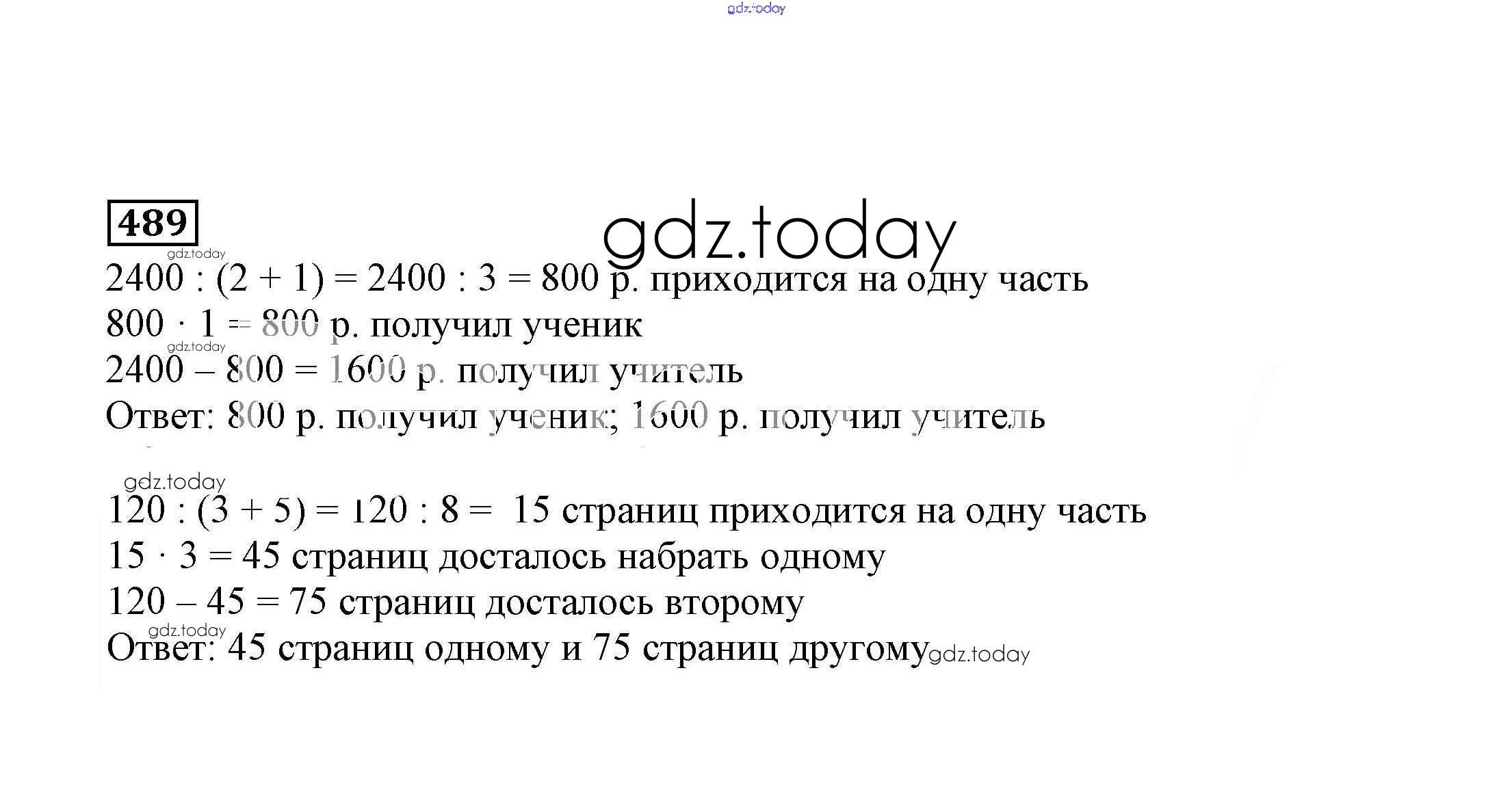 Ответы к Решение к упражнениям 489 Учебнику по Математике для 6 класса Дорофеев, Шарыгин Просвещение Академический школьный учебник 2014