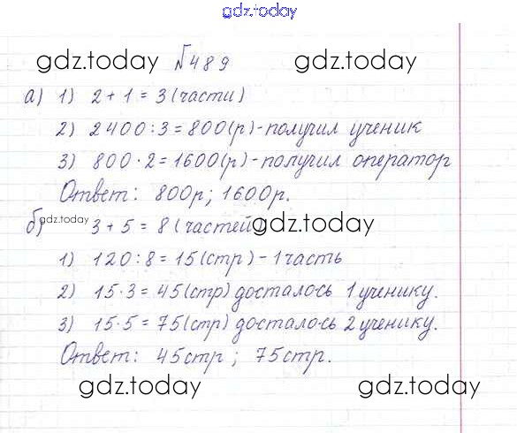 На страницах сайта gdz.today вы найдете учебный и вспомогательный материал, направленный на улучшения знаний школьной программы. ГДЗ - онлайн мир знаний Решение к упражнениям 489 Учебнику по Математике для 6 класса Дорофеев, Шарыгин Просвещение Академический школьный учебник 2014