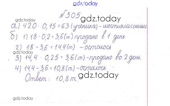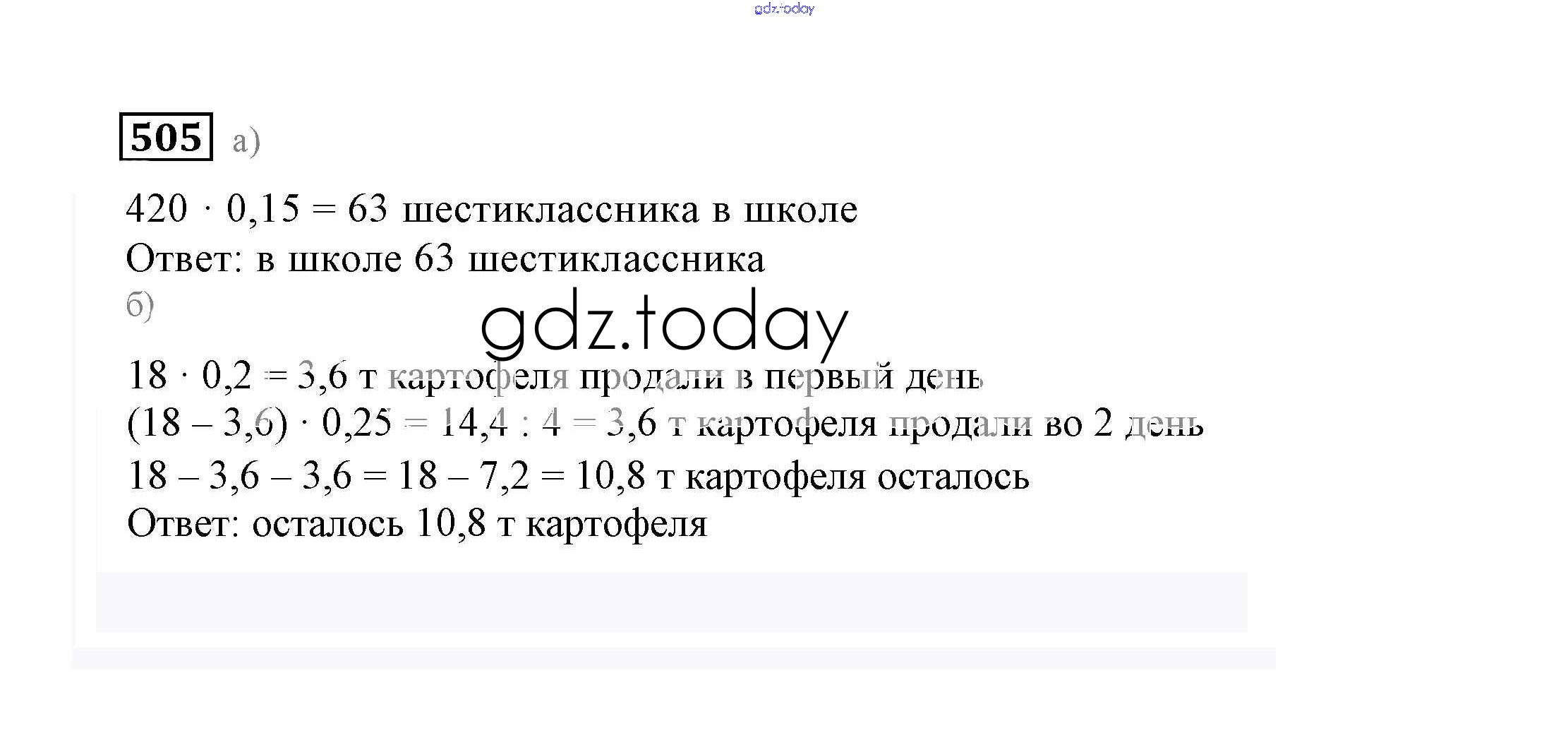 На страницах сайта gdz.today вы найдете учебный и вспомогательный материал, направленный на улучшения знаний школьной программы. ГДЗ - онлайн мир знаний Решение к упражнениям 505 Учебнику по Математике для 6 класса Дорофеев, Шарыгин Просвещение Академический школьный учебник 2014