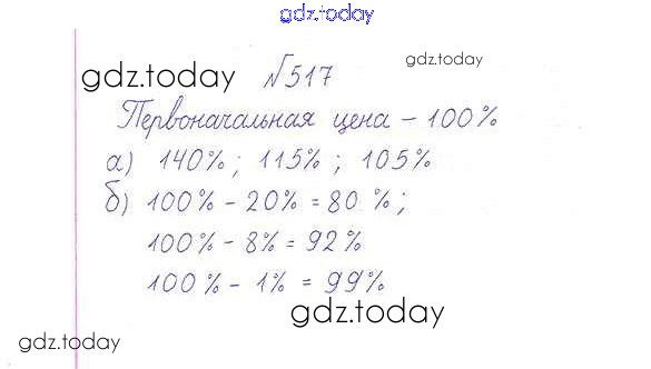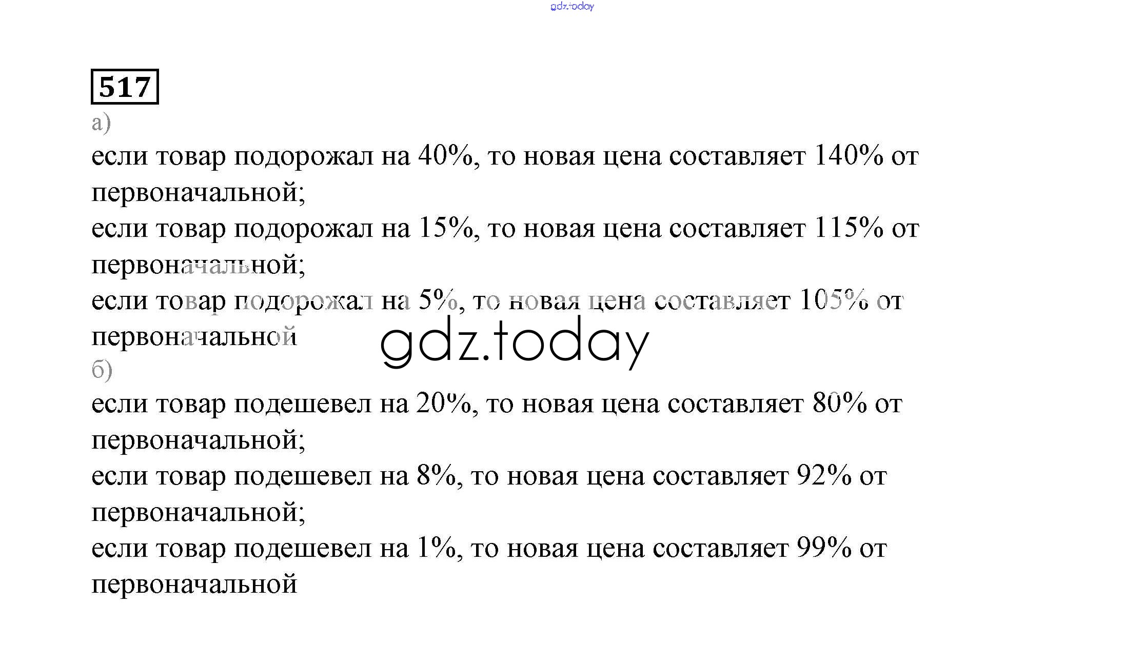 На страницах сайта gdz.today вы найдете учебный и вспомогательный материал, направленный на улучшения знаний школьной программы. ГДЗ - онлайн мир знаний Решение к упражнениям 517 Учебнику по Математике для 6 класса Дорофеев, Шарыгин Просвещение Академический школьный учебник 2014