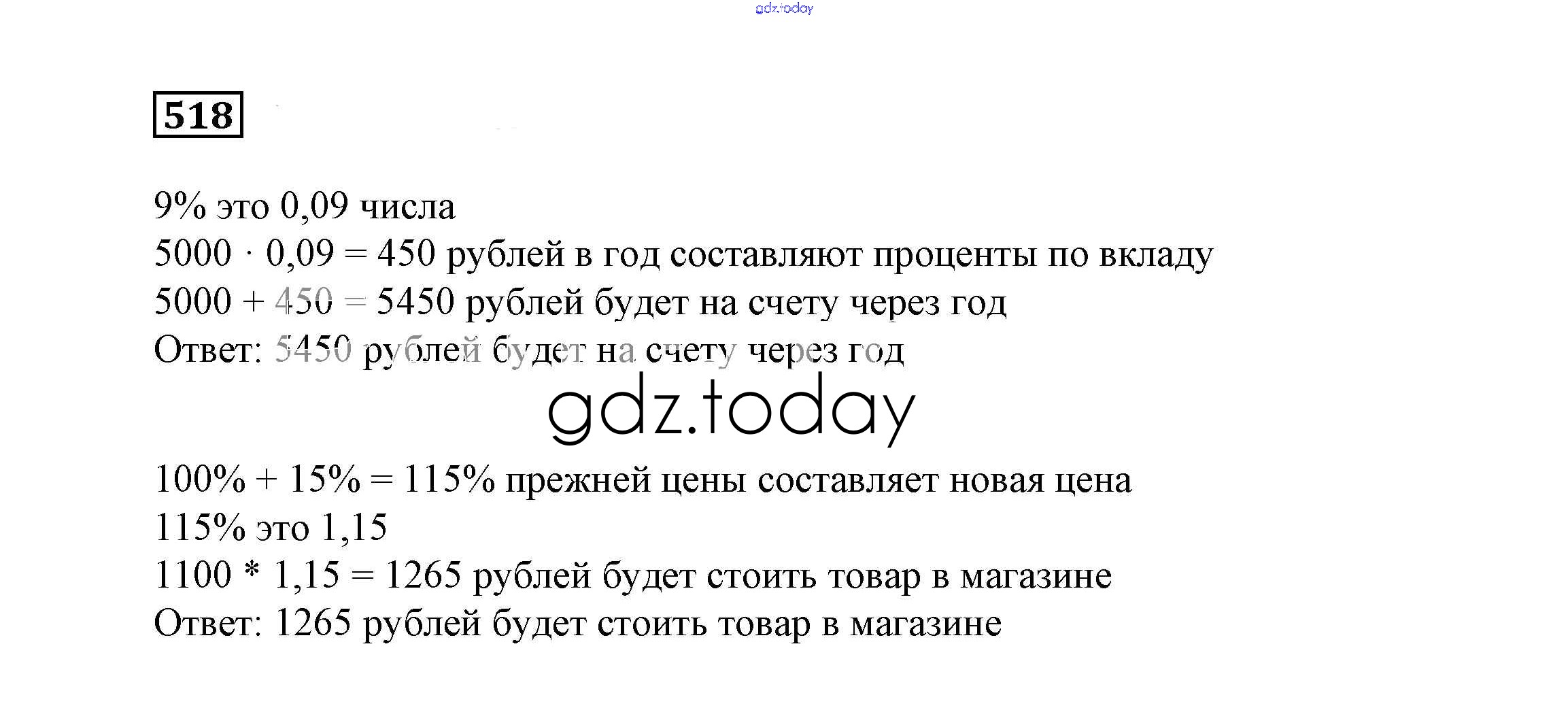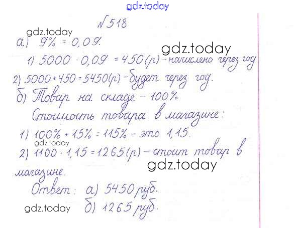На страницах сайта gdz.today вы найдете учебный и вспомогательный материал, направленный на улучшения знаний школьной программы. ГДЗ - онлайн мир знаний Решение к упражнениям 518 Учебнику по Математике для 6 класса Дорофеев, Шарыгин Просвещение Академический школьный учебник 2014