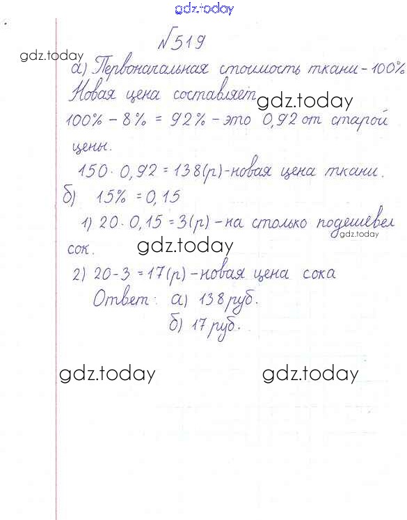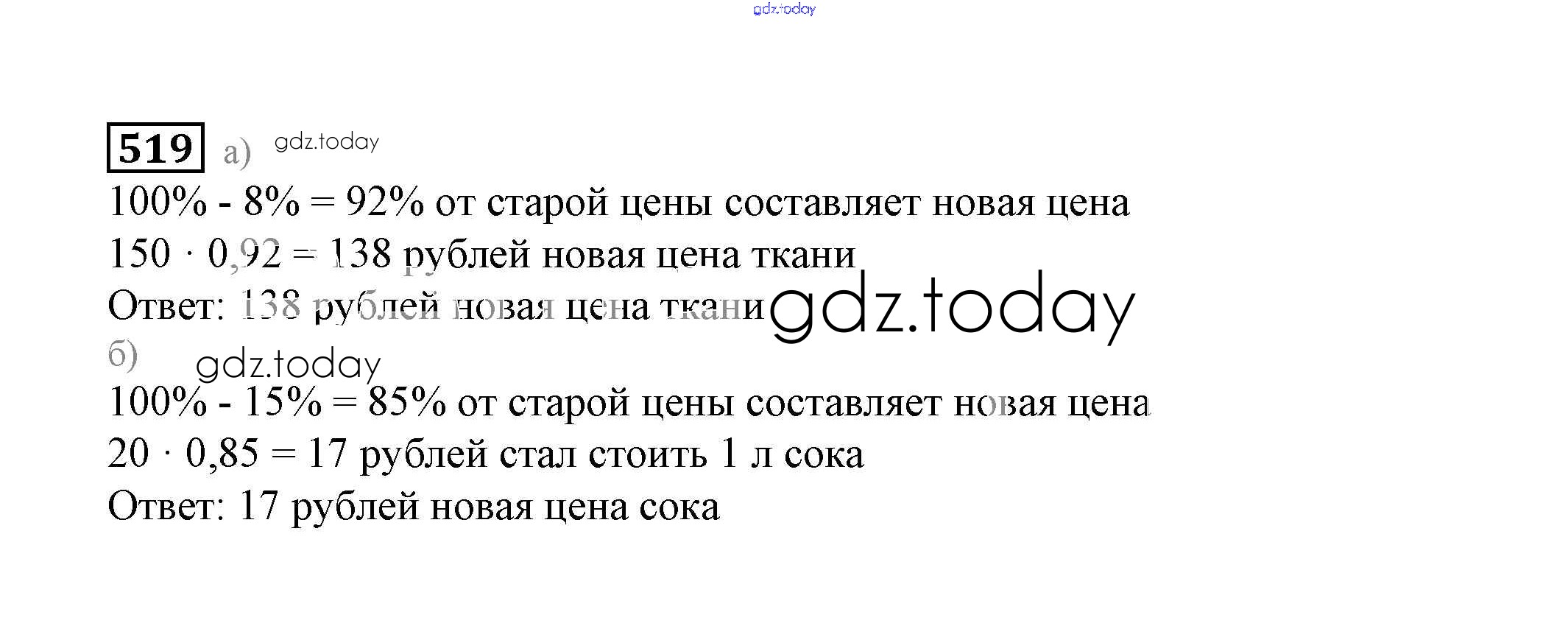 На страницах сайта gdz.today вы найдете учебный и вспомогательный материал, направленный на улучшения знаний школьной программы. ГДЗ - онлайн мир знаний Решение к упражнениям 519 Учебнику по Математике для 6 класса Дорофеев, Шарыгин Просвещение Академический школьный учебник 2014