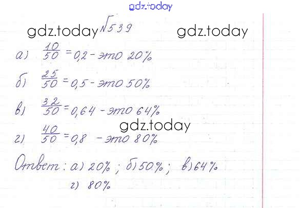 Ответы к Решение к упражнениям 539 Учебнику по Математике для 6 класса Дорофеев, Шарыгин Просвещение Академический школьный учебник 2014