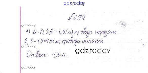 Ответы к Решение к упражнениям 594 Учебнику по Математике для 6 класса Дорофеев, Шарыгин Просвещение Академический школьный учебник 2014