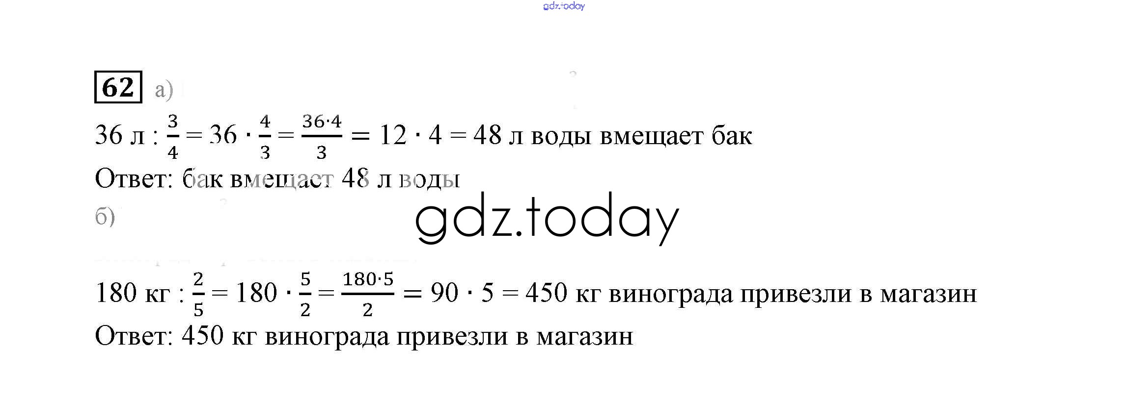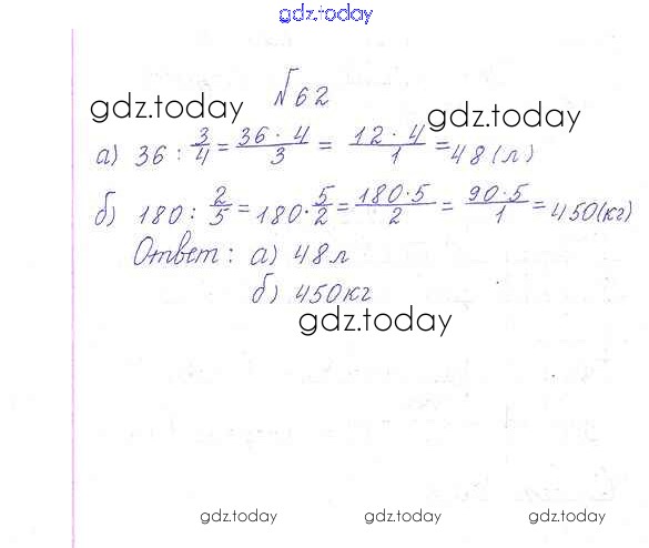 Ответы к Решение к упражнениям 62 Учебнику по Математике для 6 класса Дорофеев, Шарыгин Просвещение Академический школьный учебник 2014