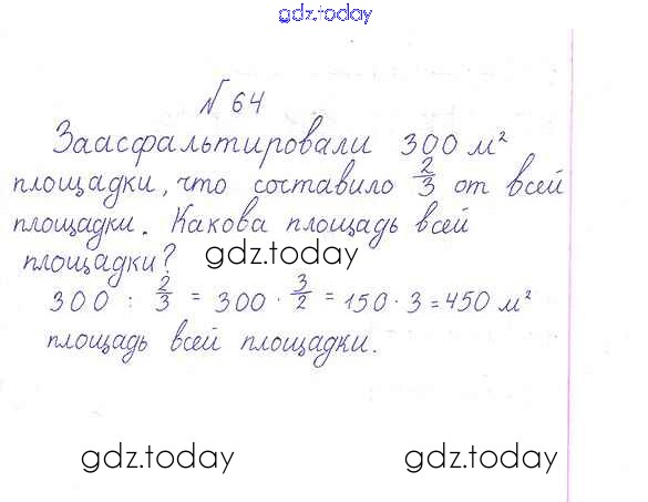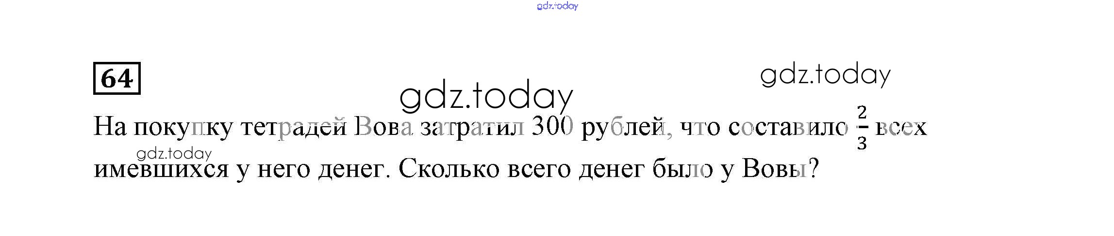 На страницах сайта gdz.today вы найдете учебный и вспомогательный материал, направленный на улучшения знаний школьной программы. ГДЗ - онлайн мир знаний Решение к упражнениям 64 Учебнику по Математике для 6 класса Дорофеев, Шарыгин Просвещение Академический школьный учебник 2014