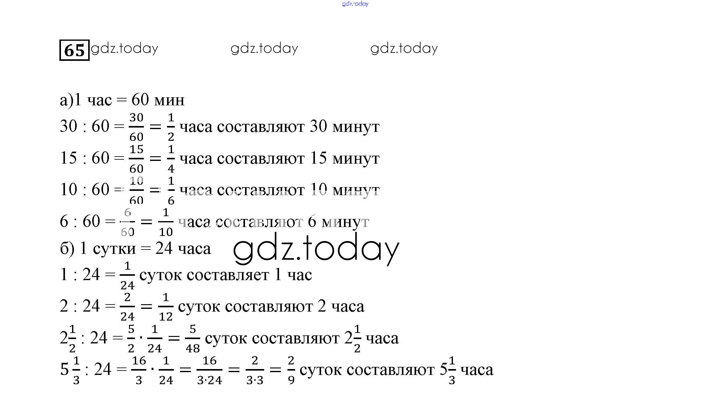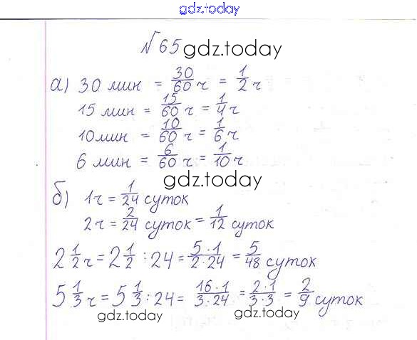 На страницах сайта gdz.today вы найдете учебный и вспомогательный материал, направленный на улучшения знаний школьной программы. ГДЗ - онлайн мир знаний Решение к упражнениям 65 Учебнику по Математике для 6 класса Дорофеев, Шарыгин Просвещение Академический школьный учебник 2014