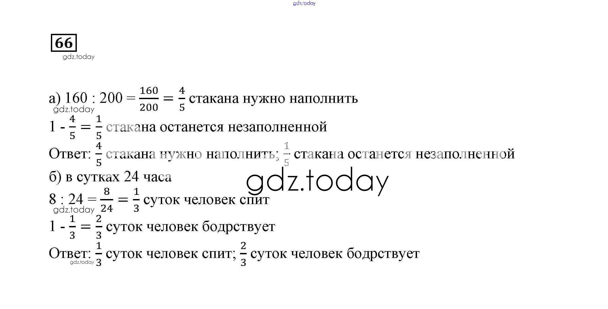 На страницах сайта gdz.today вы найдете учебный и вспомогательный материал, направленный на улучшения знаний школьной программы. ГДЗ - онлайн мир знаний Решение к упражнениям 66 Учебнику по Математике для 6 класса Дорофеев, Шарыгин Просвещение Академический школьный учебник 2014