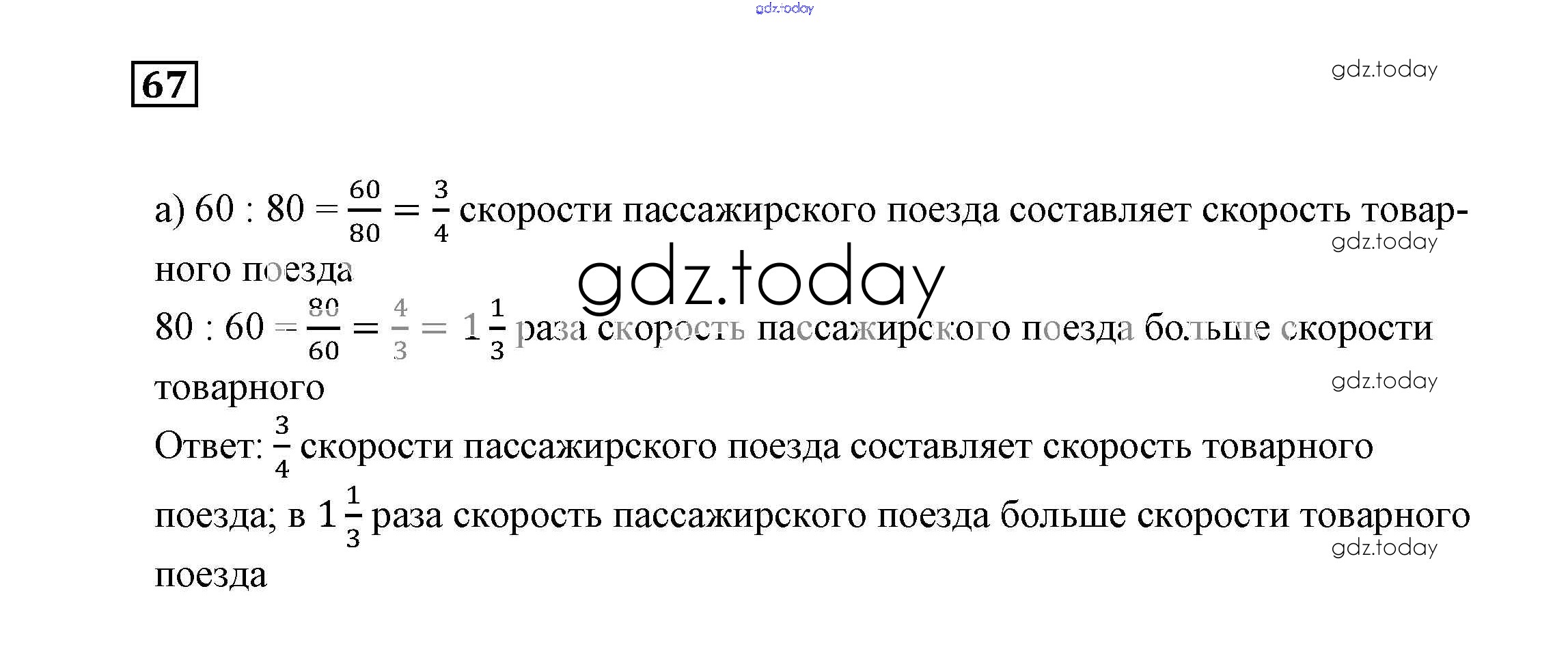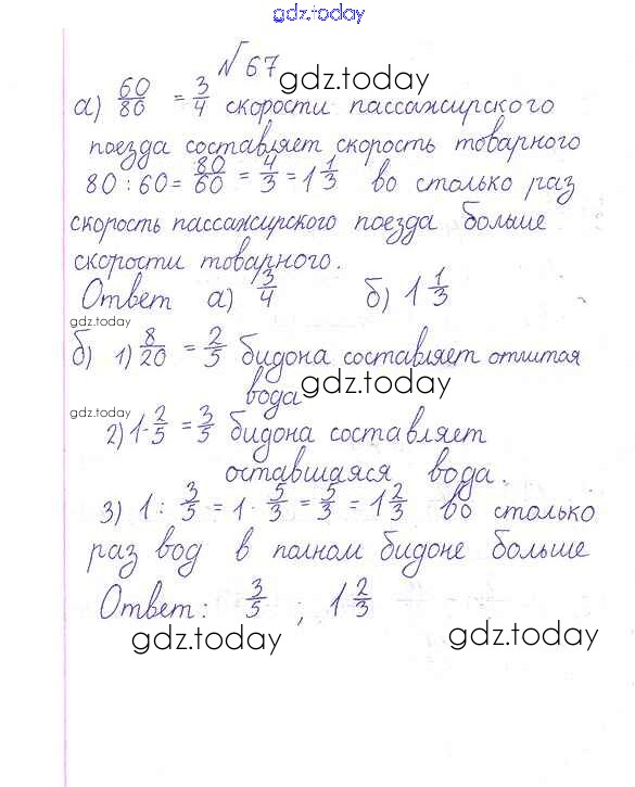 На страницах сайта gdz.today вы найдете учебный и вспомогательный материал, направленный на улучшения знаний школьной программы. ГДЗ - онлайн мир знаний Решение к упражнениям 67 Учебнику по Математике для 6 класса Дорофеев, Шарыгин Просвещение Академический школьный учебник 2014