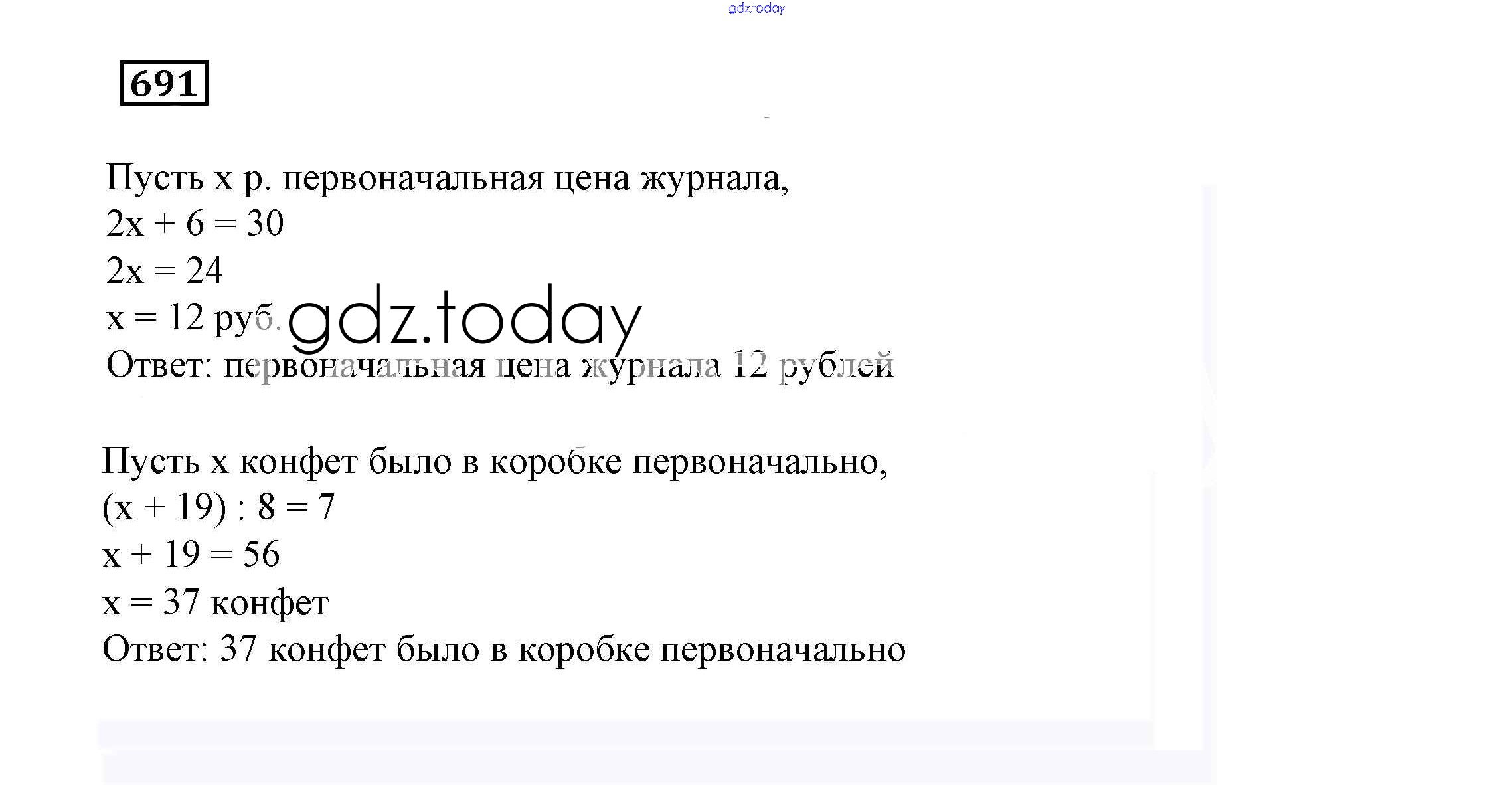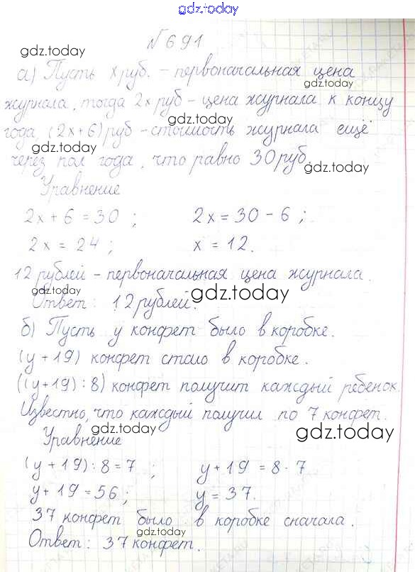 Ответы к Решение к упражнениям 691 Учебнику по Математике для 6 класса Дорофеев, Шарыгин Просвещение Академический школьный учебник 2014