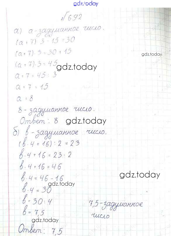 Ответы к Решение к упражнениям 692 Учебнику по Математике для 6 класса Дорофеев, Шарыгин Просвещение Академический школьный учебник 2014