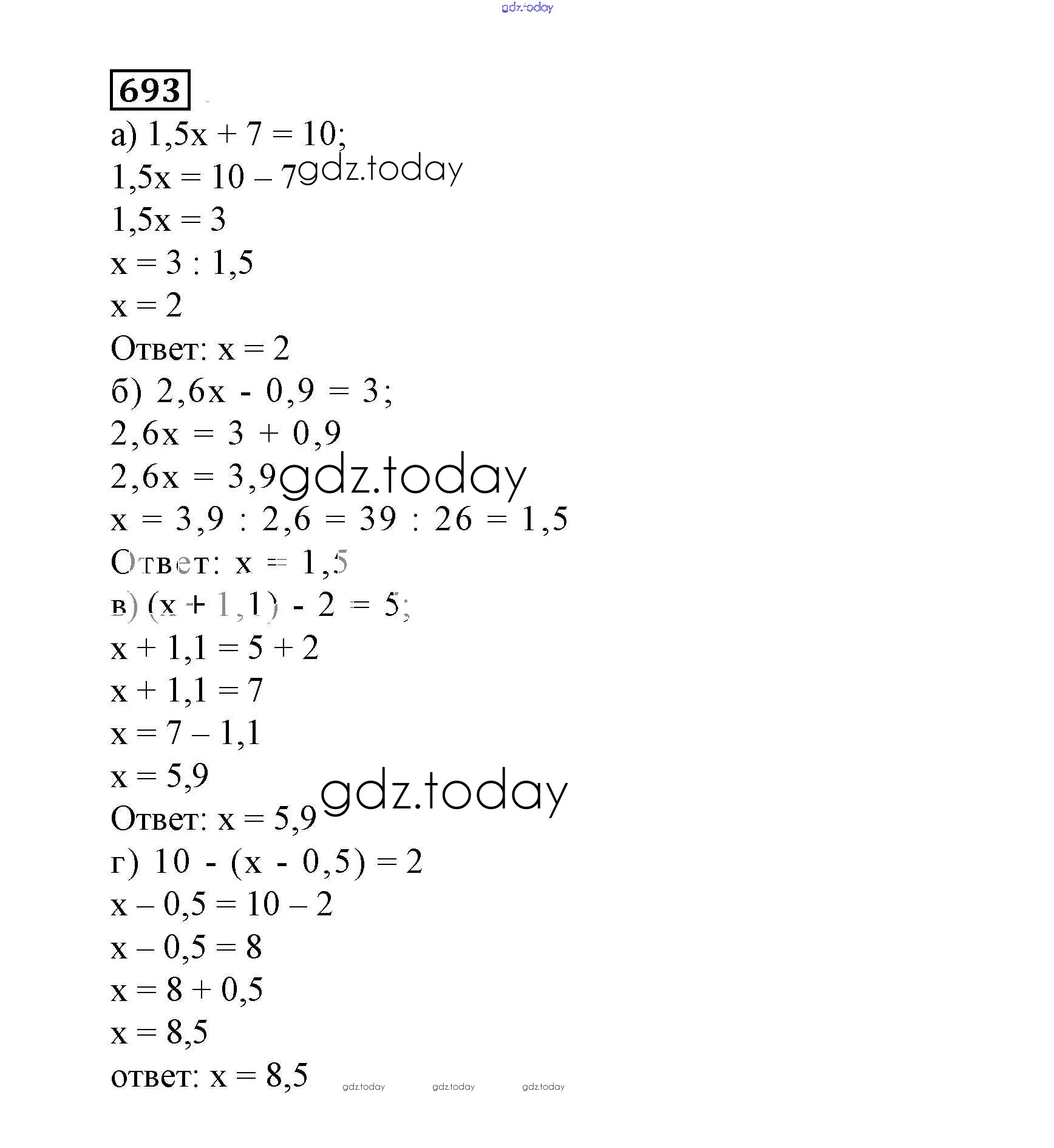 Ответы к Решение к упражнениям 693 Учебнику по Математике для 6 класса Дорофеев, Шарыгин Просвещение Академический школьный учебник 2014