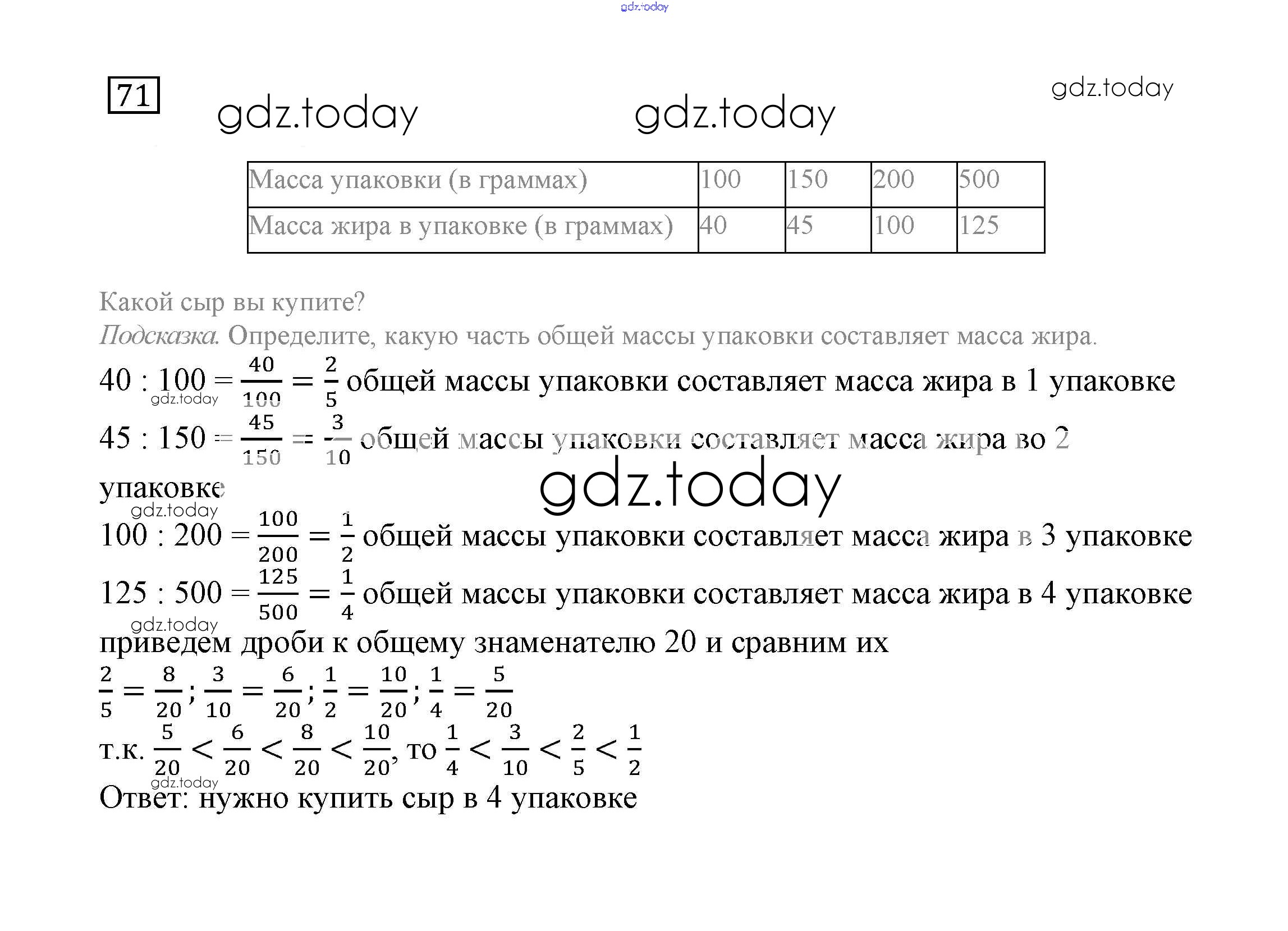 На страницах сайта gdz.today вы найдете учебный и вспомогательный материал, направленный на улучшения знаний школьной программы. ГДЗ - онлайн мир знаний Решение к упражнениям 71 Учебнику по Математике для 6 класса Дорофеев, Шарыгин Просвещение Академический школьный учебник 2014