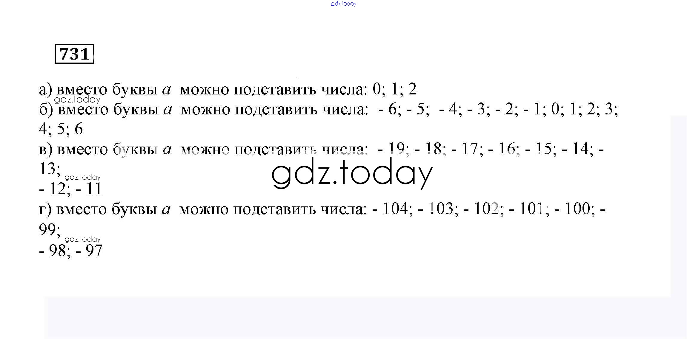 На страницах сайта gdz.today вы найдете учебный и вспомогательный материал, направленный на улучшения знаний школьной программы. ГДЗ - онлайн мир знаний Решение к упражнениям 731 Учебнику по Математике для 6 класса Дорофеев, Шарыгин Просвещение Академический школьный учебник 2014