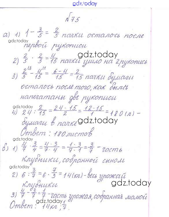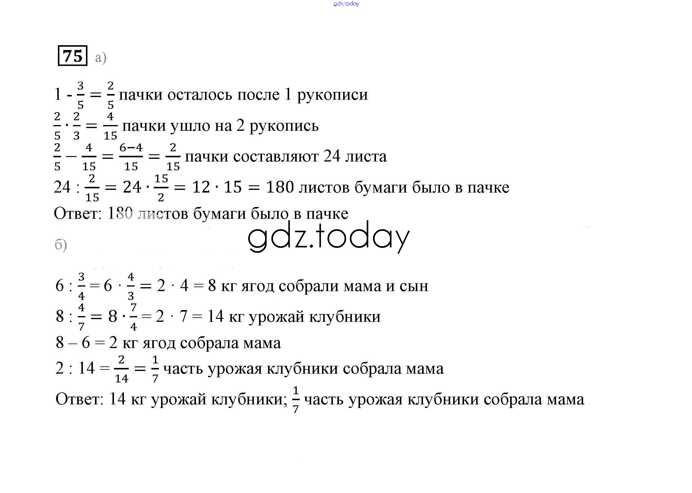 На страницах сайта gdz.today вы найдете учебный и вспомогательный материал, направленный на улучшения знаний школьной программы. ГДЗ - онлайн мир знаний Решение к упражнениям 75 Учебнику по Математике для 6 класса Дорофеев, Шарыгин Просвещение Академический школьный учебник 2014