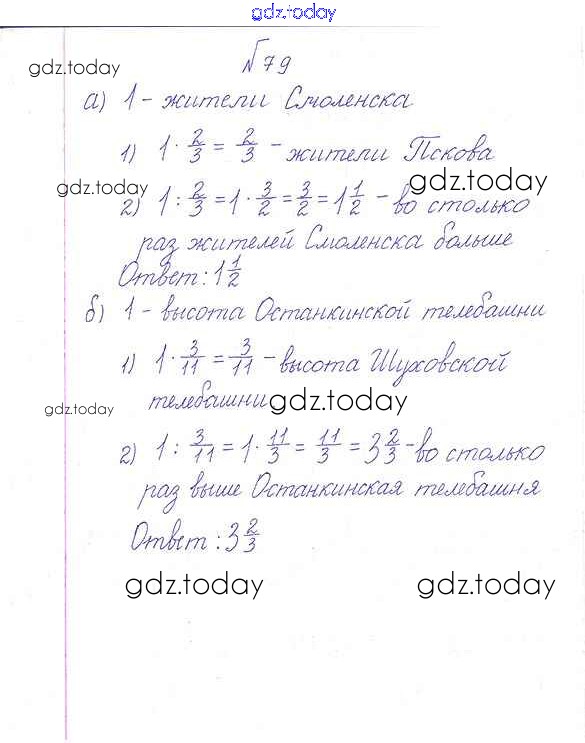 Ответы к Решение к упражнениям 79 Учебнику по Математике для 6 класса Дорофеев, Шарыгин Просвещение Академический школьный учебник 2014