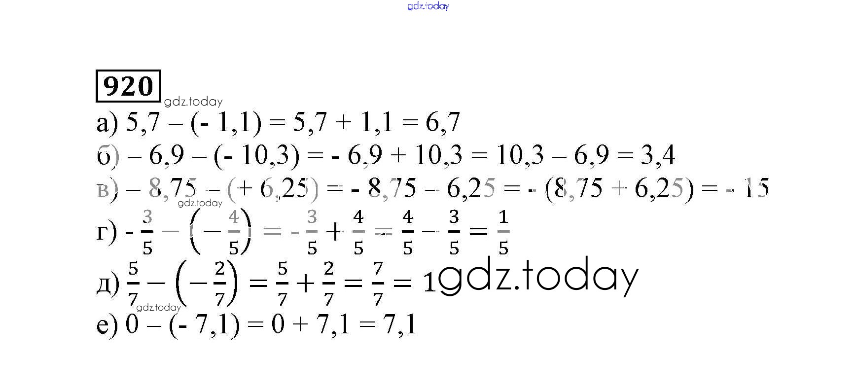 Ответы к Решение к упражнениям 920 Учебнику по Математике для 6 класса Дорофеев, Шарыгин Просвещение Академический школьный учебник 2014