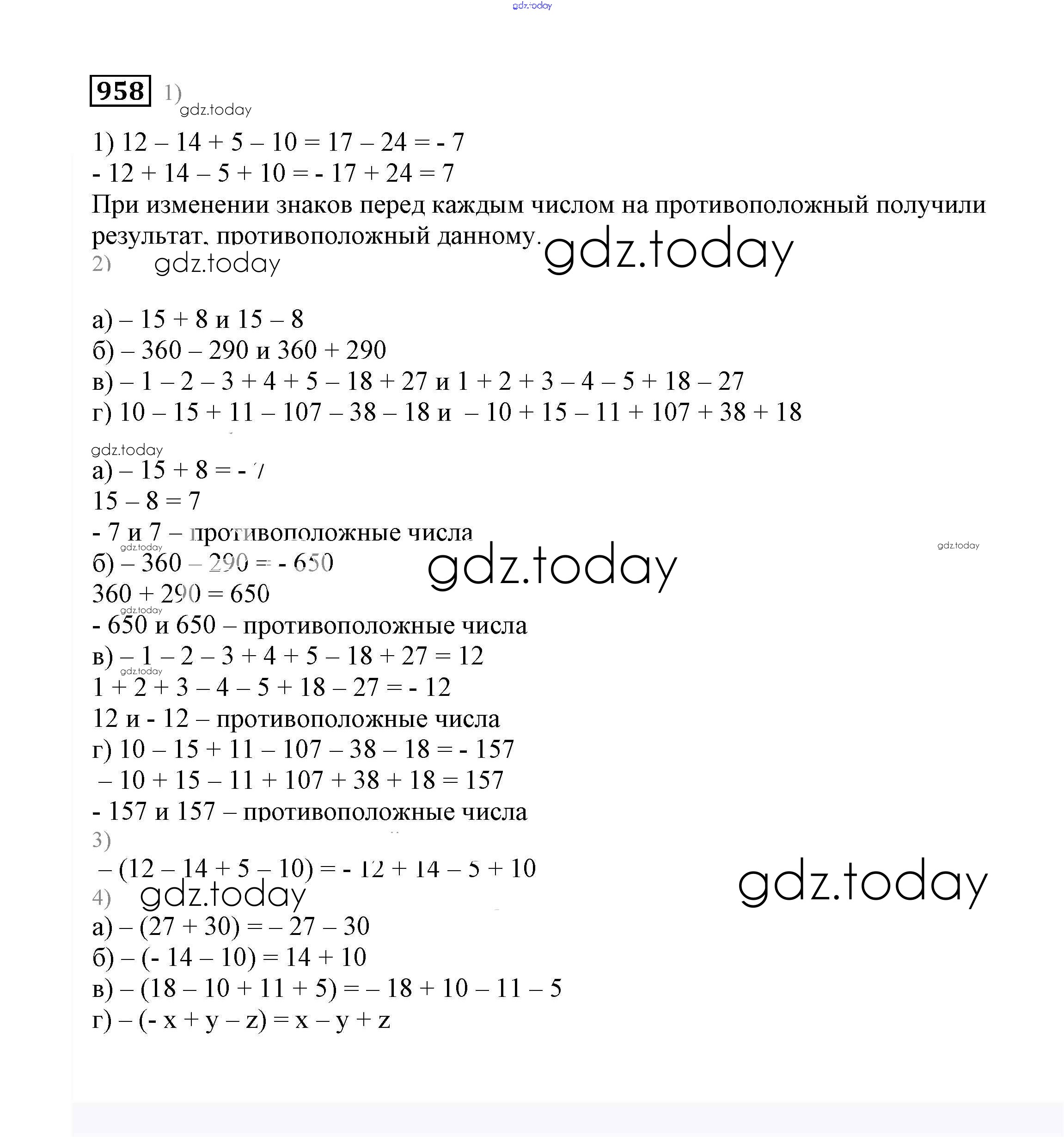 Ответы к Решение к упражнениям 958 Учебнику по Математике для 6 класса Дорофеев, Шарыгин Просвещение Академический школьный учебник 2014