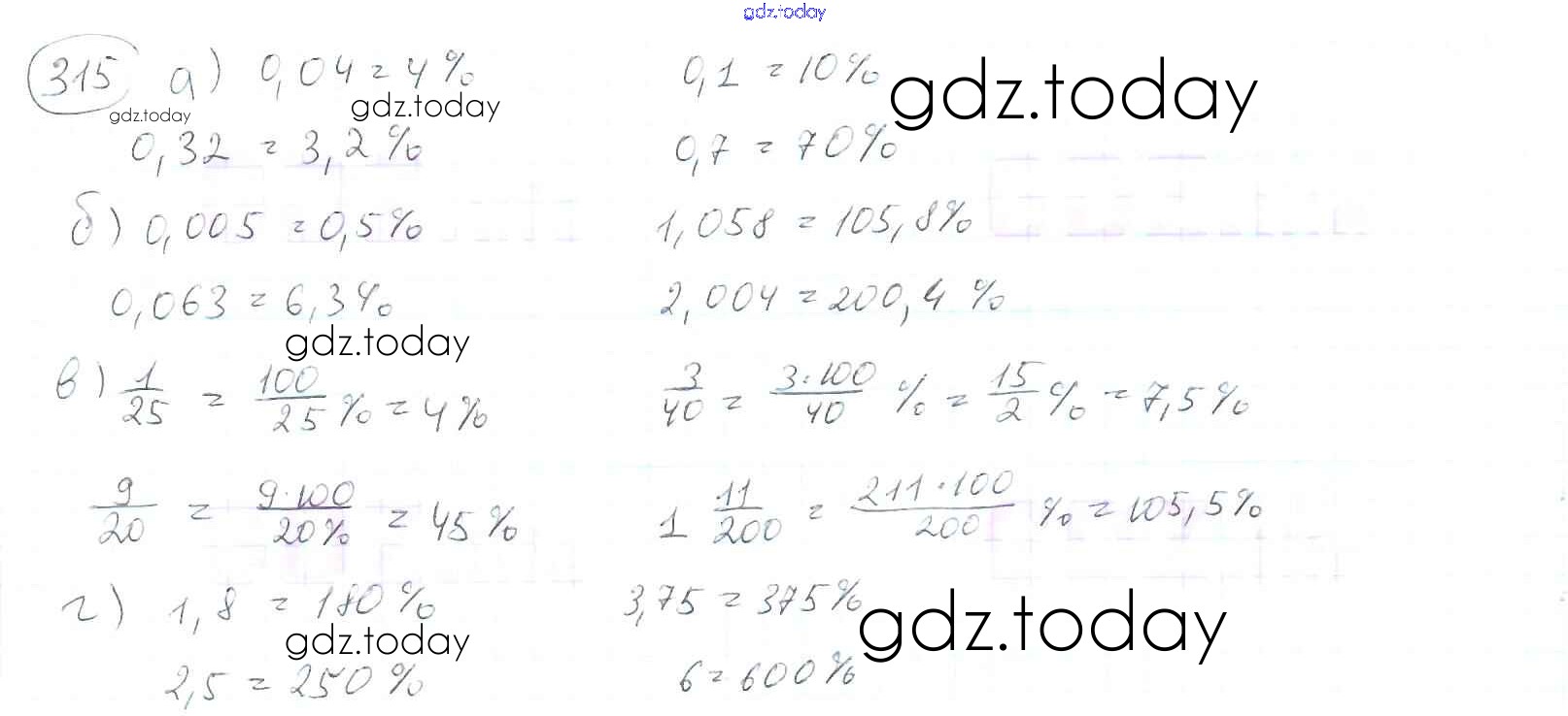 На страницах сайта gdz.today вы найдете учебный и вспомогательный материал, направленный на улучшения знаний школьной программы. ГДЗ - онлайн мир знаний Решение. Часть 1. Упражнения 315 Учебнику по Математике для 6 класса Петерсон, Дорофеев Ювента Учусь учиться 2014